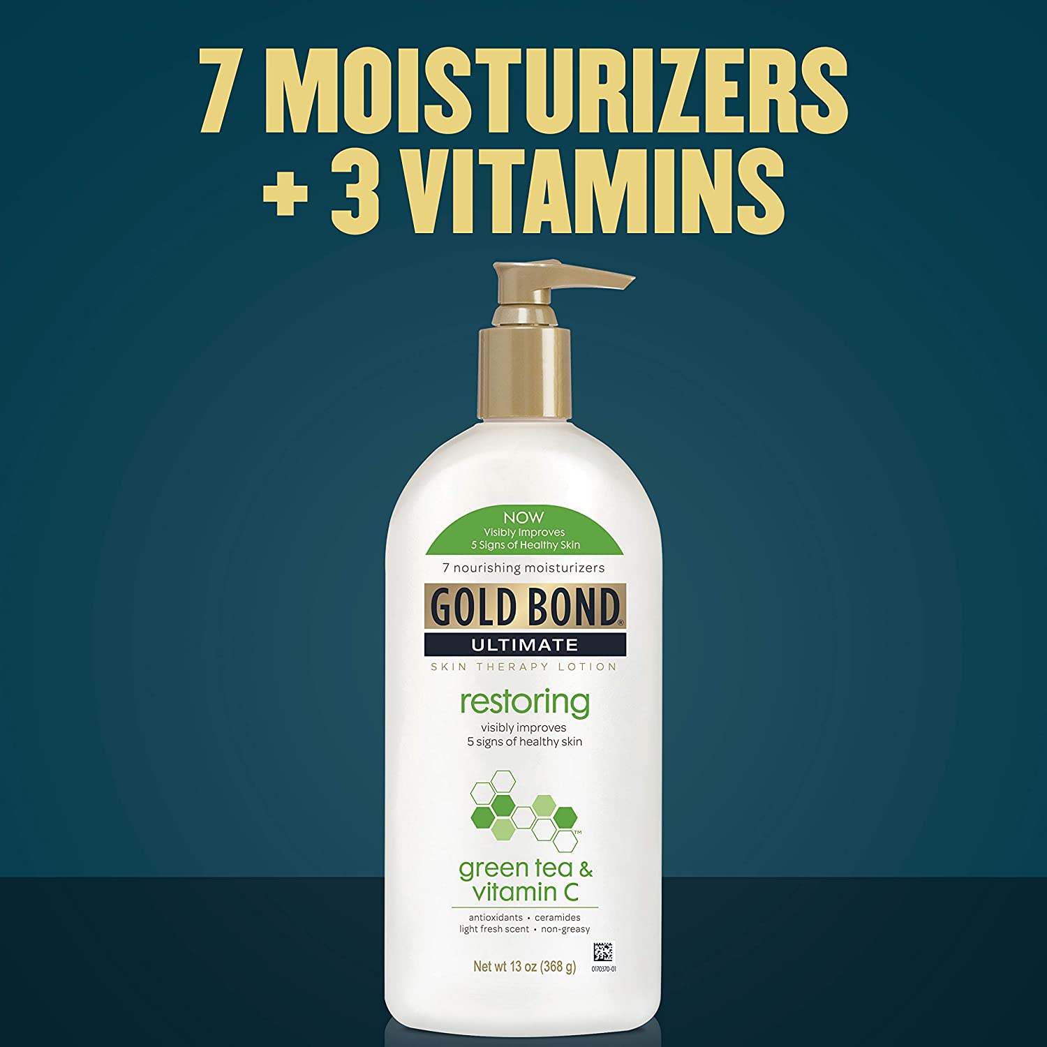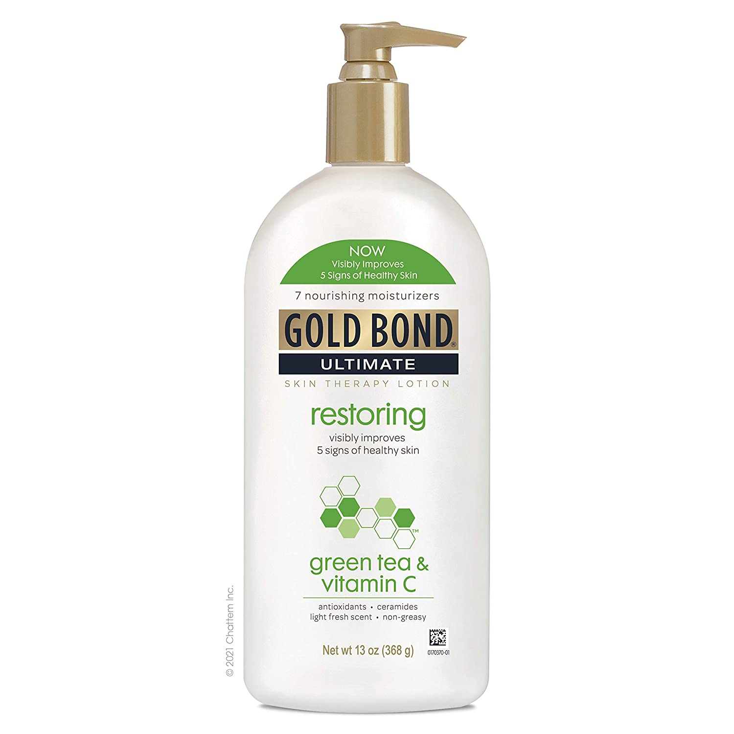 - GREEN TEA AND VITAMIN C SKIN LOTION: With green tea and vitamins A, C and E, Gold Bond Ultimate Restoring Green Tea and Vitamin C helps visibly improve five signs of healthy skin with nourishing moisturizers, restoring vitamins, and soothing green tea.