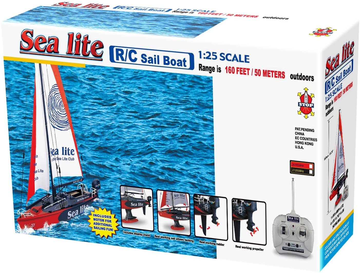 Highly Detailed, Full Function Radio control Sea Lite Sail Boat In Red. Range is up to 160 sq. Feet, Narrow Band Frequency, Sail direction is changeable.