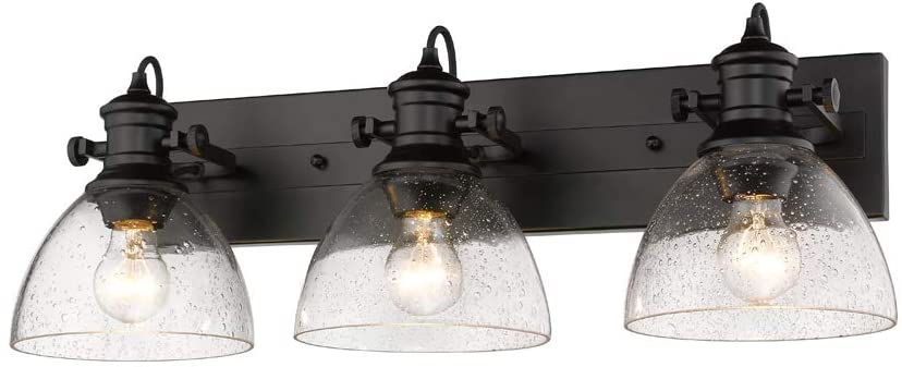 Golden Lighting 3118-BA3 BLK-SD Hines Vanity Light, Black with Seeded Glass