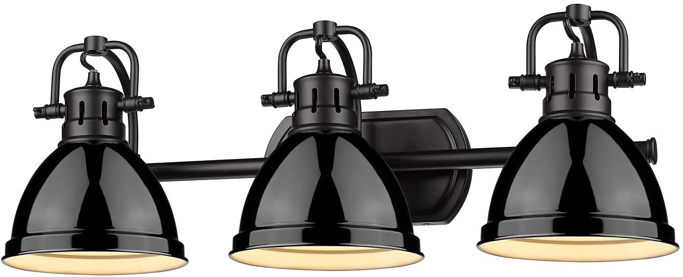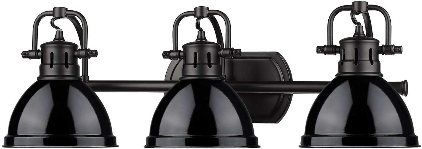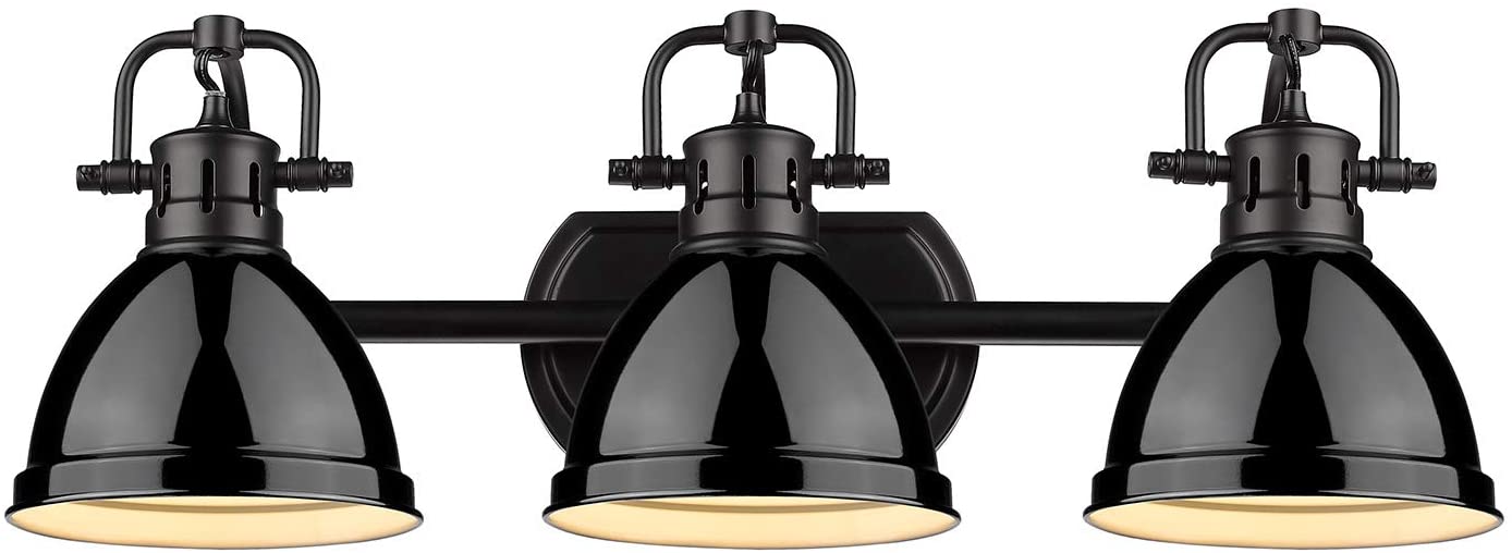 Transform the look of your room with this classic, vintage-inspired fixture by Golden Lighting. Golden Lighting's Duncan collection is contemporary style with an industrial feel. The collection features a variety of simple, traditional silhouettes that are a nod to a bygone era. A variety of plated and painted metal shade finishes are offered in combination with durable Aged Brass, Black, Chrome or Pewter fixture bodies. This 1-light bath vanity is perfect for modern or contemporary style home decors.