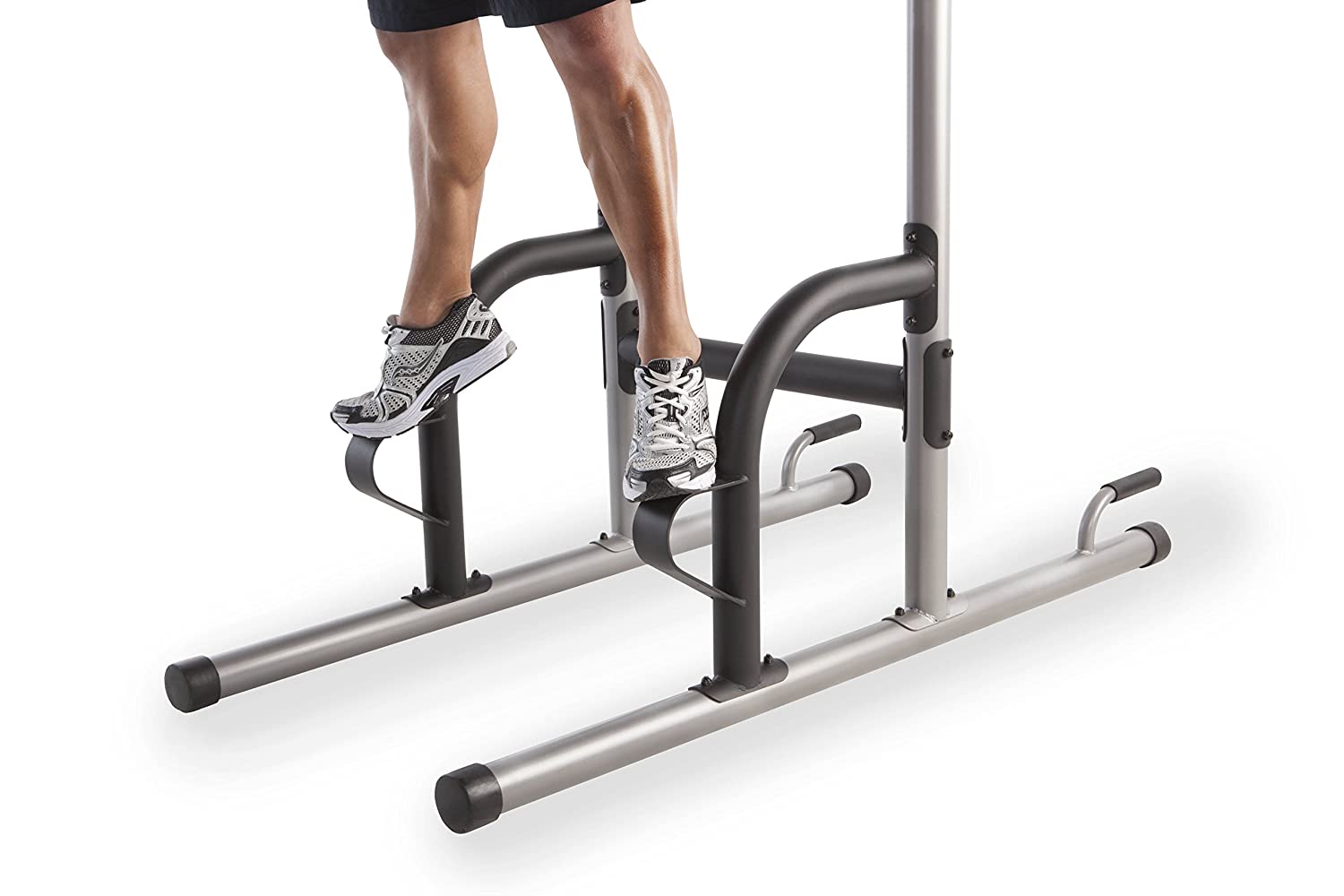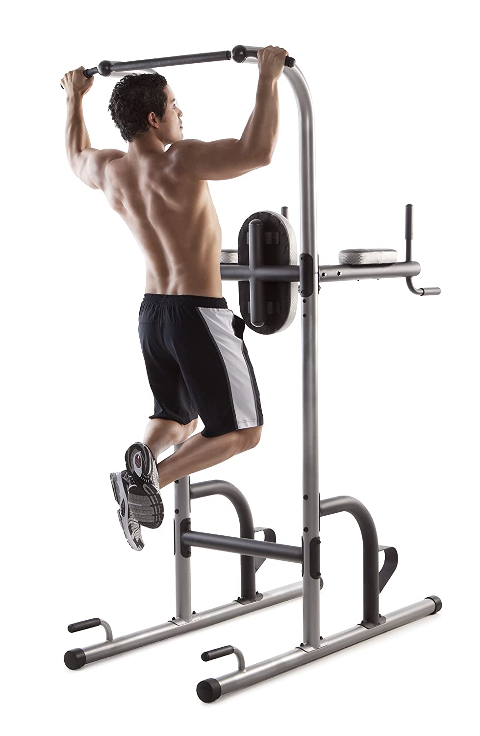 With the Gold's Gym XR 10.9 Power Tower you can push, pull, and lift your body to perfection. This four-in-one power tower offers a vertical knee-raise station to define your abs, a push-up station with padded grips, a multi-grip pull-up station to build stronger arms, and a dip station to work triceps, chest, and shoulders. Additional Features: Vertical knee-raise station Push-up station Multi-grip pull-up station Dip station The bodybuilding authority since 1965, Golds Gym is the original Southern California bodybuilding gym founded by Joe Gold. Based on that history and experience, ICON Health & Fitness has developed Gold's Gym home gyms, weight training equipment, cardiovascular training equipment, and more, all of which offer a gym-quality, total-body workout, which can be enjoyed by everyone, even those with busy schedules, in the privacy and comfort of the home, at any hour of the day or night. 4-in-1 design. Padded hand grips. Sturdy support base. Back and arm supports. Manufacturer's warranty included (see Guarantee & Returns). Assembled dimensions: 57L x 41W x 84H in..