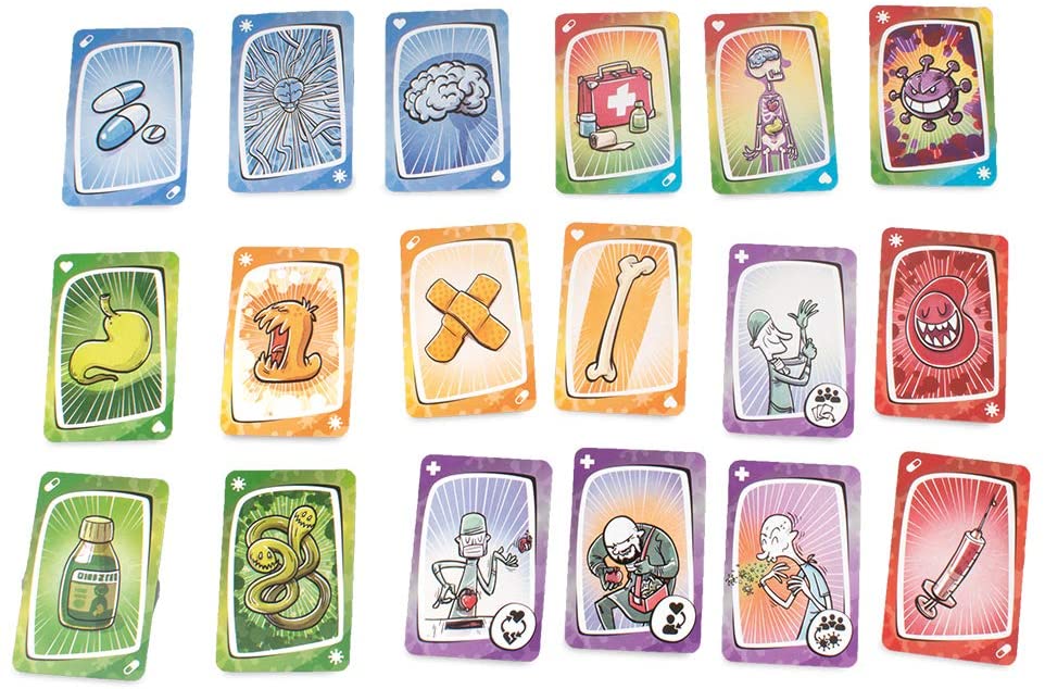 Warning: The fun is contagious! Protect your organs while attacking others in this easy to learn card game. Place a virus on another player's organ card to sabotage them, or use a medicine card to immunize your own organs. Use your wits and thwart your rivals' efforts - the first player with four healthy organs wins! For 2-6 players, ages 8 and up.