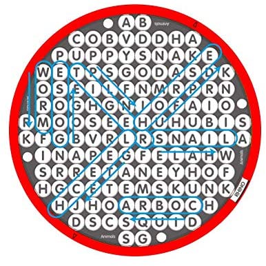 The race is on with this exciting version of the classic hidden word puzzle - it turns a solitary activity into a fun group word game as players go on a word search. Rotate the specially-designed circular board to reveal the word that the players will race to find on this turn. Everyone plays at once, and the first player to locate the word marks it with transparent colored tiles. With twists and turns that allow players to remove tiles played by competitors, Wordsearchers find the hidden word puzzles make a great game for kids and families to play together (and to boggle their minds!). The player with the most tiles on the board at the end wins. The game includes 464 words to search for in 16 different puzzles and is good for years of fun. Includes game board, 8 double-sided game cards, 280 marking tiles and illustrated instructions. For 2-4 players, ages 7 and up.