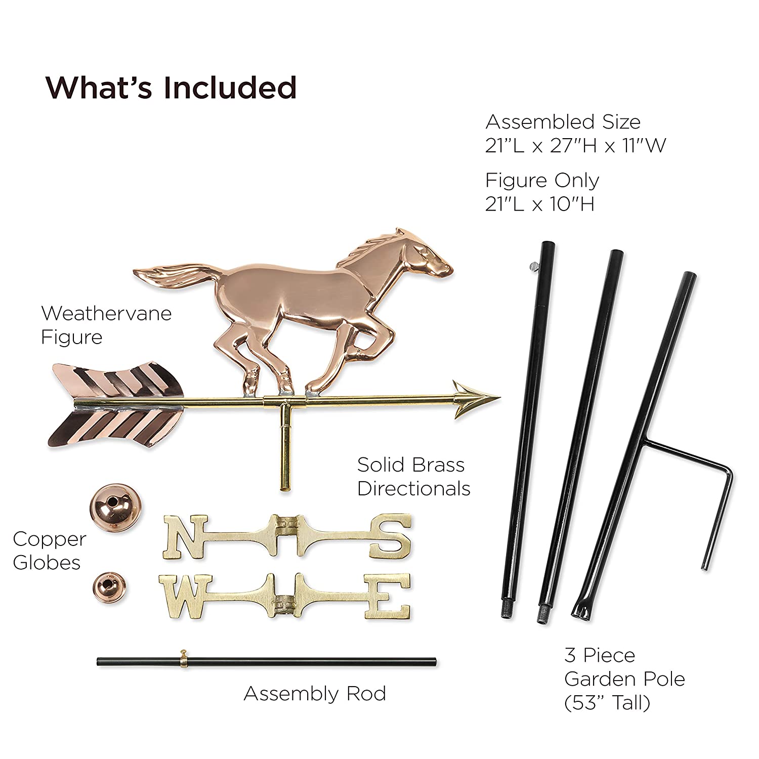 - Easy-to-assemble and install; Includes a 53” garden pole, an all-weather assembly rod, solid brass directionals and copper spacer balls