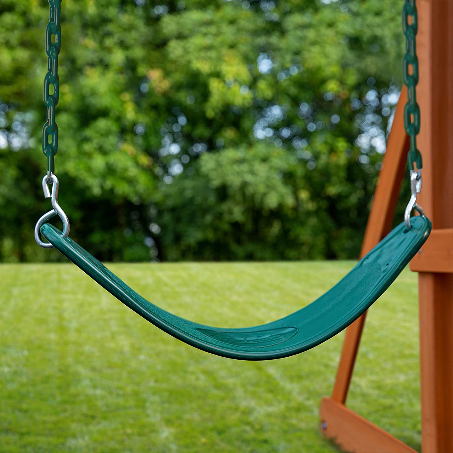 Gorilla Playsets' Extreme-Duty Swing Belt with Coated Chains is a definite must-have for any outdoor swing set. The belt swing conforms to your child's body for added safety and comfort. The chains feature a plastisol coating that provides a pinch-free grip and prevents snagging. The UV-protection on the belt and chains helps prevent fading from sunlight and keeps cooler on hot days. Made from durable materials, this swing will support up to 250 pounds. The Deluxe Swing Belt is compatible with most backyard playsets.