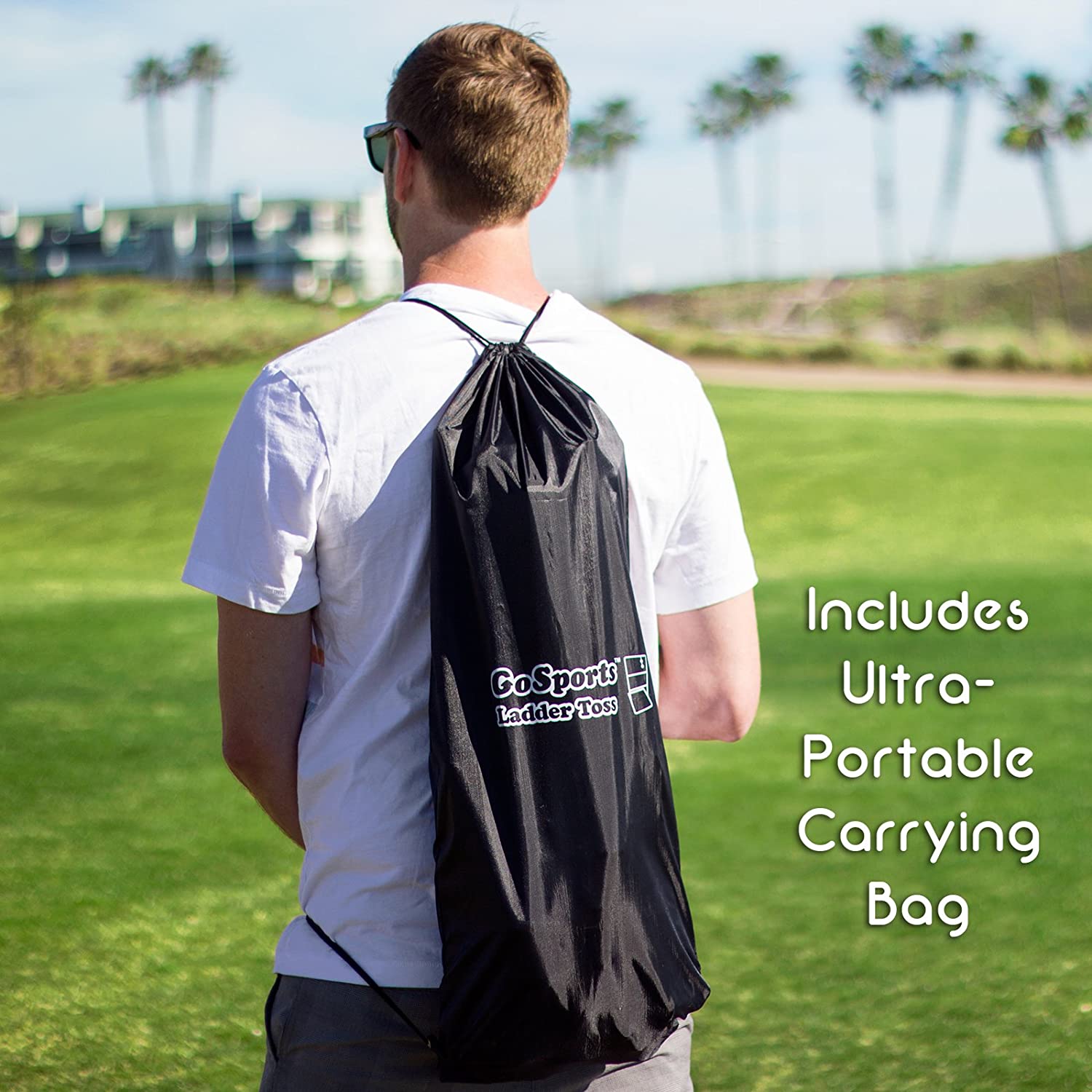The GoSports Ladder Toss Game is made from sturdy high-gloss PVC to make it one of the best Ladder Toss sets available. This set includes 6 rubber bolos which are great for indoor or outdoor use and younger players. The Bolos are also connected using thick rope to limit tangles unlike other cheap bolo's thin rope that quickly turn into a tangled nightmare. We also glue the connectors onto the PVC pipe so the game comes in as few pieces as possible, making setup lightning quick. Again, compare this to our competitor's economy sets that arrive with a bag full of countless parts and vague assembly directions that turn fun into frustration. The game also includes built in score trackers so you can easily keep score and focus on having fun. The set can be conveniently stored in the included backpack style carrying case. If you are looking for a higher-end Ladder Toss that is made without compromise, you can buy the Go Sports Premium Ladder Toss Game, but if you are looking to have some casual fun at a great price, this is the set for you. That said, this GoSports standard set is built well beyond the quality of any other economy ladder toss set.