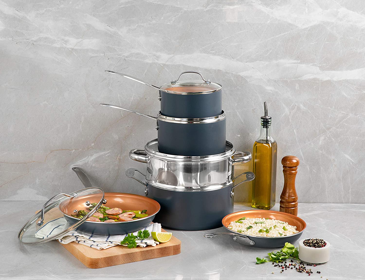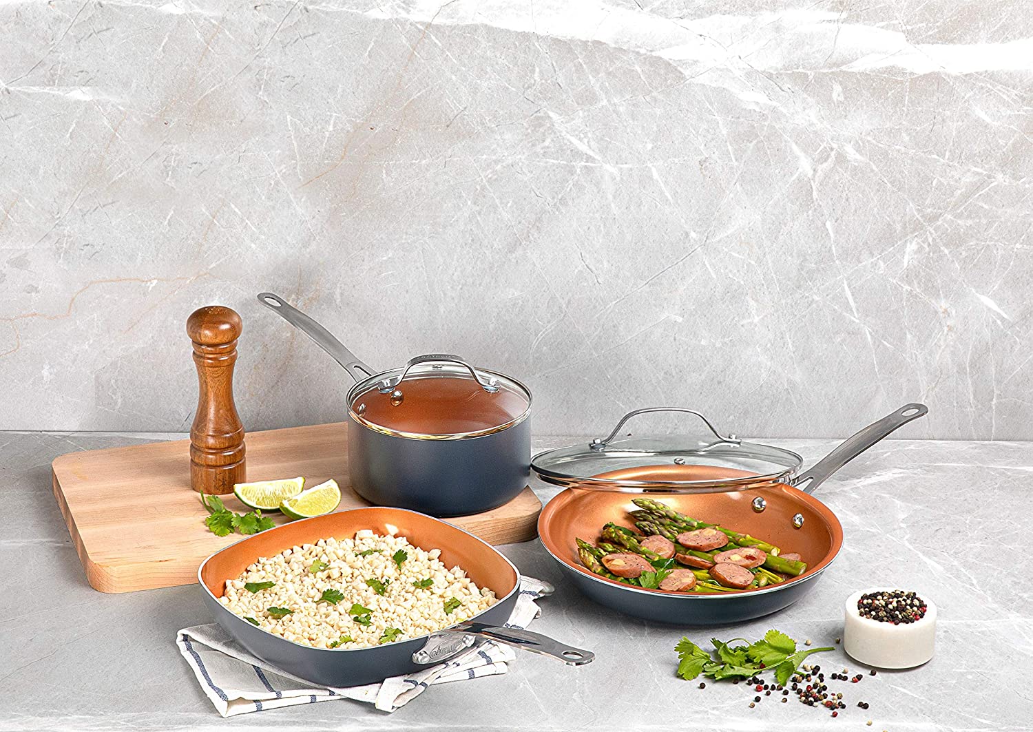 - Oven safe up to 500° F, The pots and pans are suitable for all stovetops, except induction