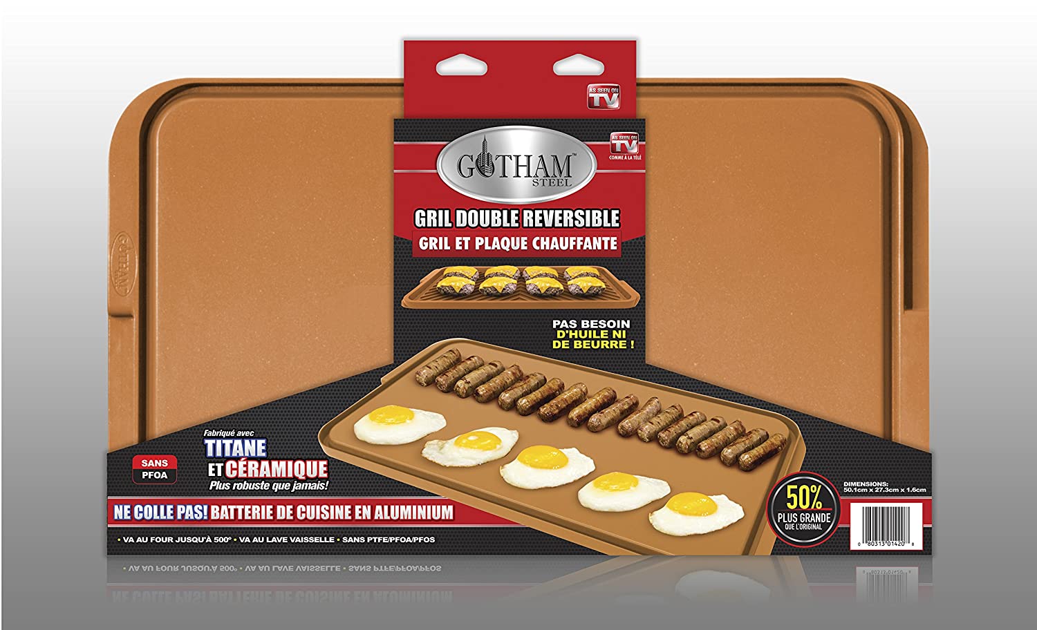 Gotham Steel Titanium and Ceramic Nonstick Large Rectangular Double Grill - Copper