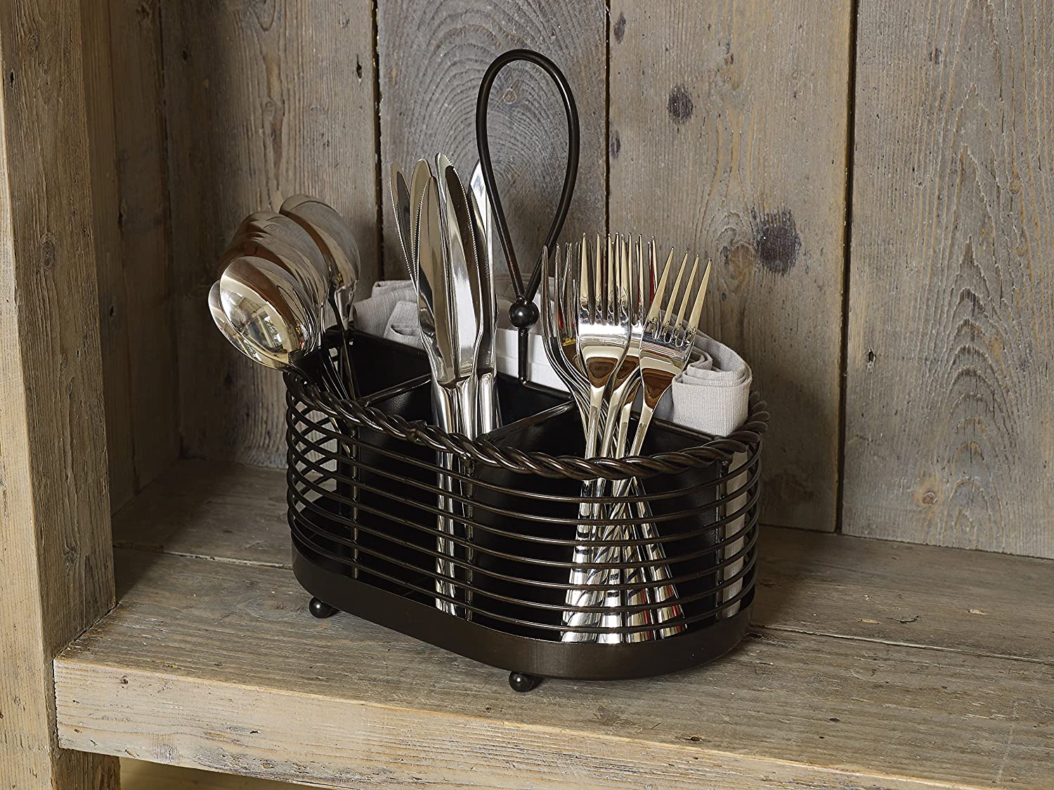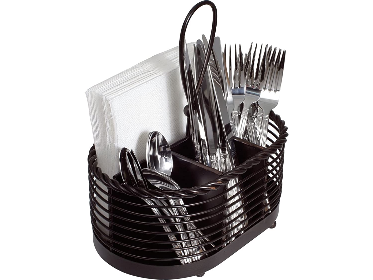 - This caddy features a handle for easy transporting and an attractive rope twist design