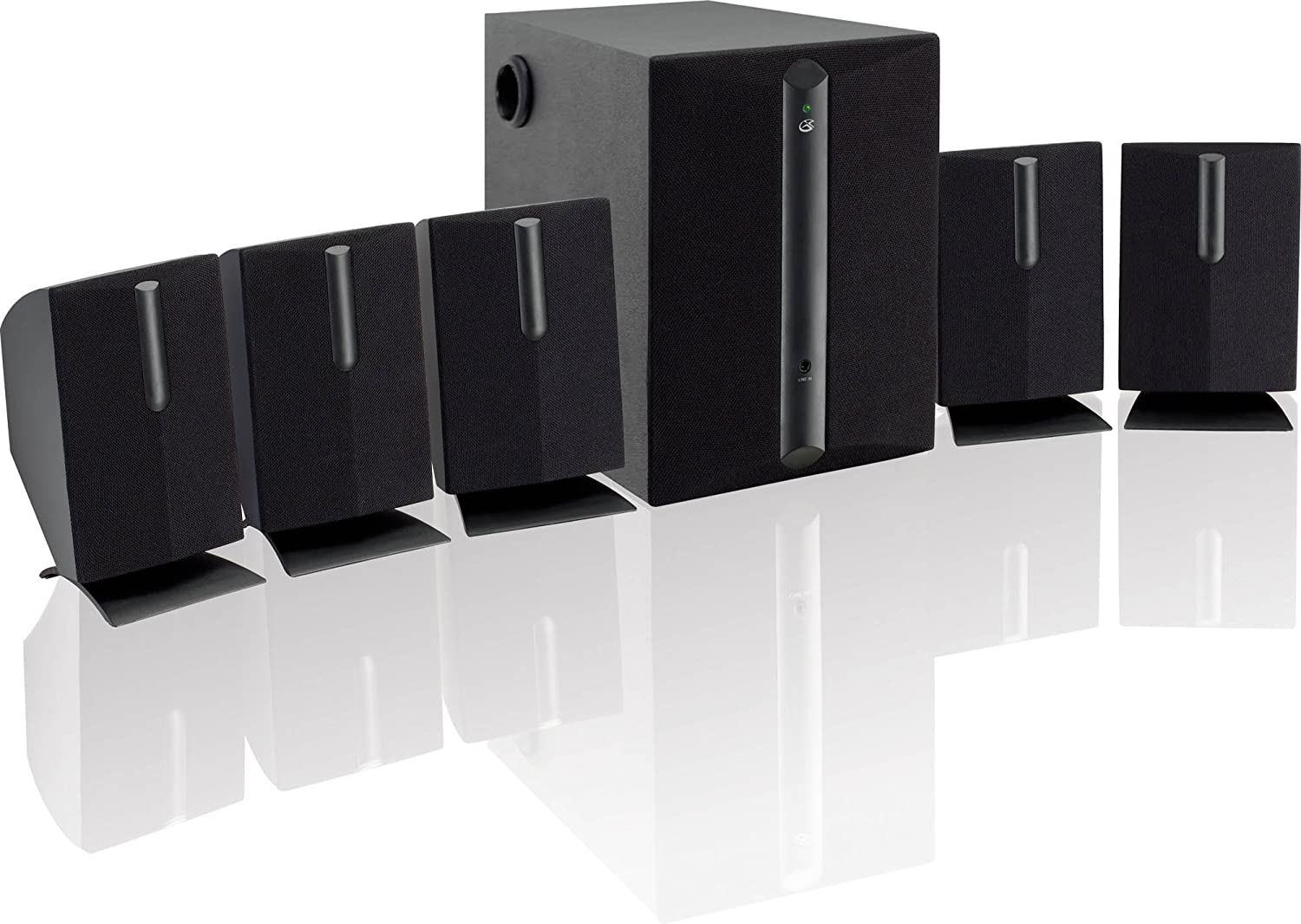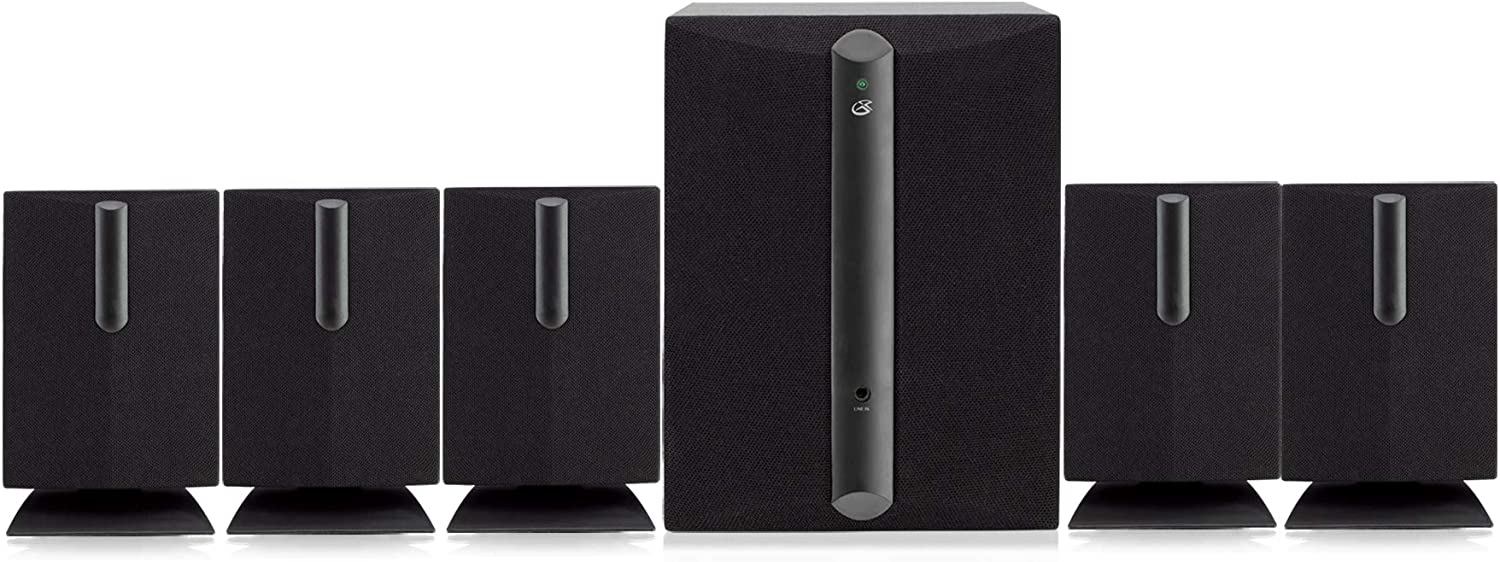 Complete your home theater experience with stunning sound from this 5.1 channel powered speaker system. Connect a TV, DVD player, video game system, MP3 player, or computer and enjoy virtual surround sound. The GPX HT050B Home Theater Speaker System includes a high power amplifier and 6 surround speakers: subwoofer, front left and right, rear left and right, and center. Each speaker grill is cloth-covered for a stylish design that works well with any home entertainment system. Digital volume and bass control knobs are on the back as well as RCA stereo audio inputs. Included in the box are the speakers, warranty card and user's guide. Impedance: Subwoofer- 4 Ohms; Speakers - 8 Ohms. For more than 30 years, GPX has offered one of the broadest portfolios of technology-driven consumer audio and video products. An award-winning consumer electronics company, GPX has built a solid reputation on excellent product quality, reliability, design, and affordability.