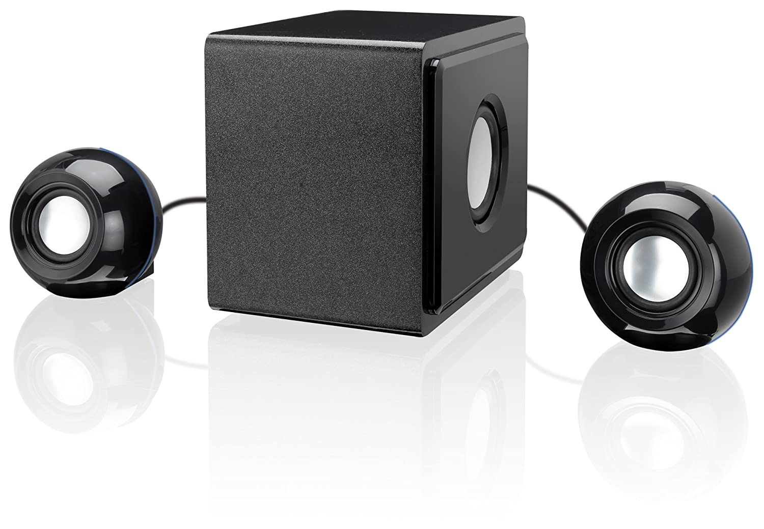 Complete your home theater experience with stunning sound from this 2.1 channel powered speaker system. Connect a TV, DVD player, video game system, MP3 player, or computer and be blown away by the magnificent sound. The GPX HT12B Home Theater Speaker System includes a built-in amplifier and 3 surround speakers: left, right, and subwoofer. Each speaker is a stylish black with blue LED light effects for a cool design that works well with any home entertainment system. Volume and bass control knobs are on the back as well as RCA stereo audio inputs. Included in the box are the speakers, 3.5mm to RCA audio cable, warranty card and user's guide. Impedance: Subwoofer- 6 ohms; Speakers- 4 Ohms. For more than 30 years, GPX has offered one of the broadest portfolios of technology-driven consumer audio and video products. An award-winning consumer electronics company, GPX has built a solid reputation on excellent product quality, reliability, design, and affordability.
