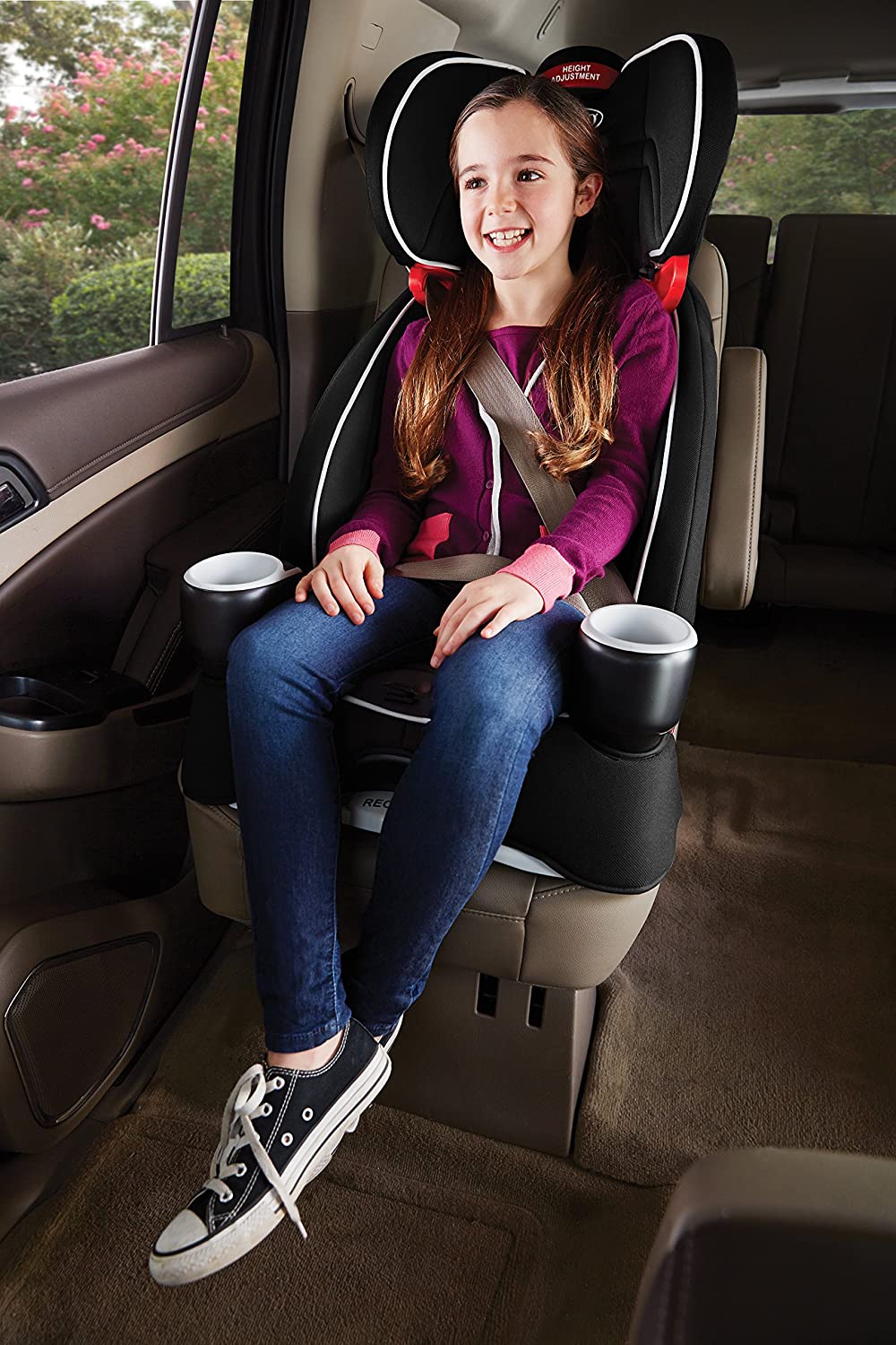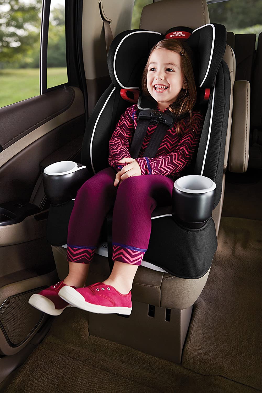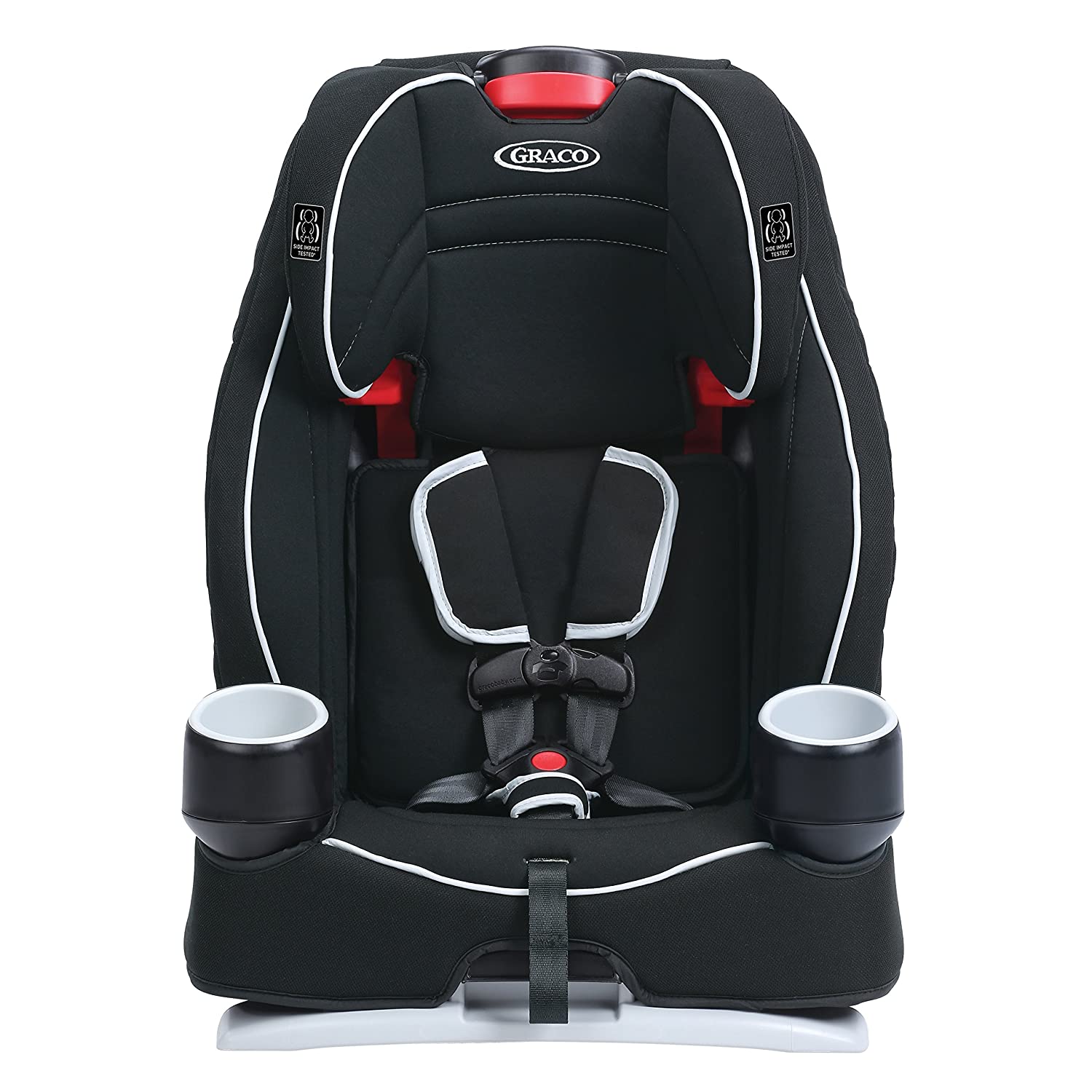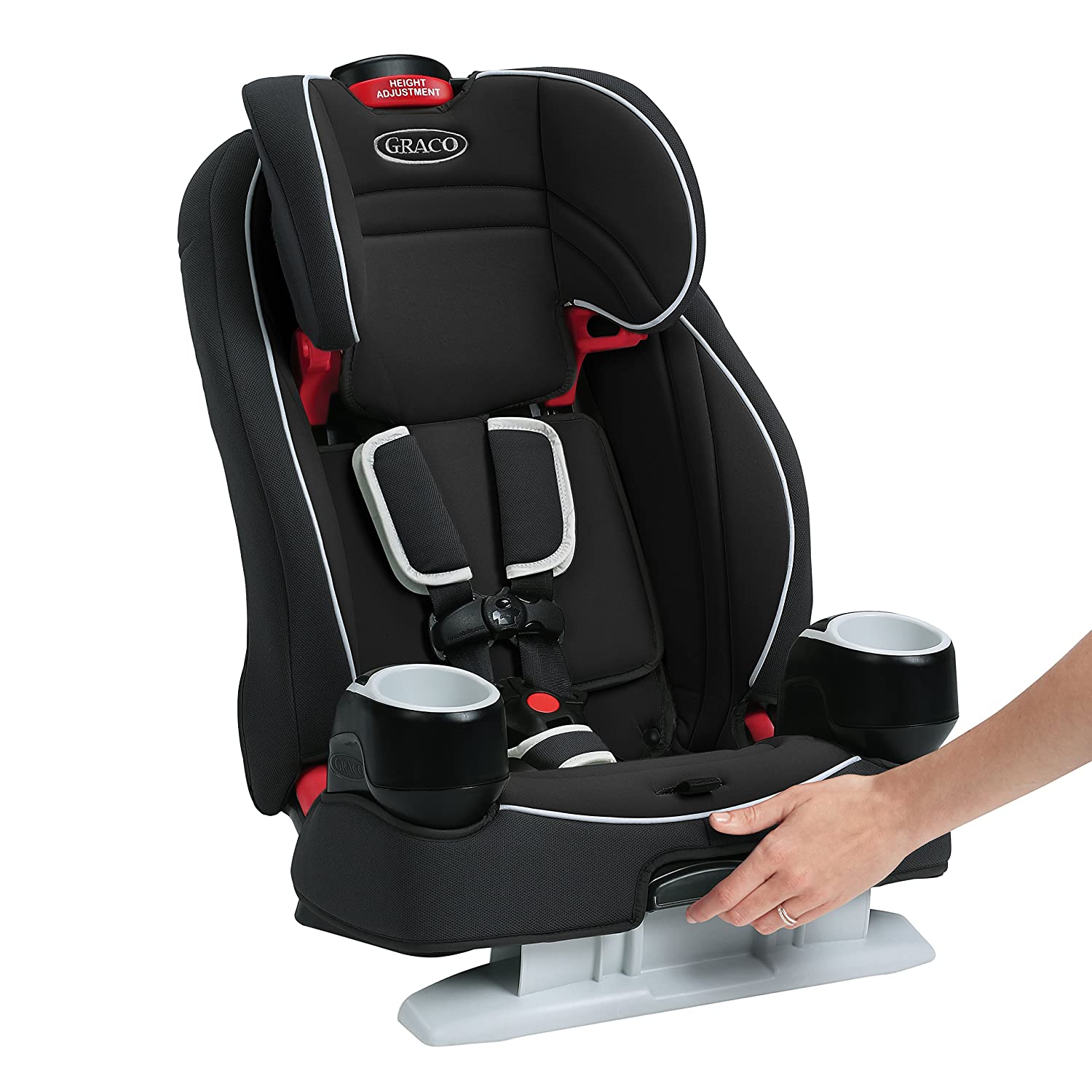 2-in-1 booster car seat converts from a 5-point harness forward-facing car seat (22-65 lb) to a highback belt-positioning booster (30-100 lb)