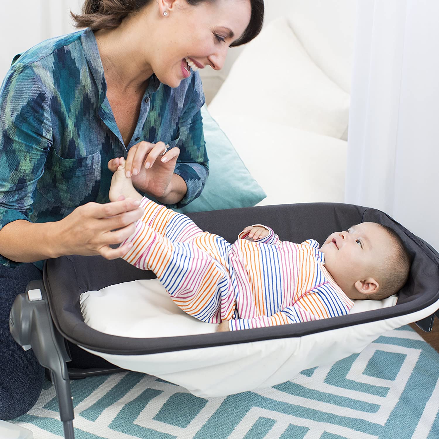 • Newborn Napper is a baby bassinet and play yard station that creates a cozy, dedicated space for baby to rest