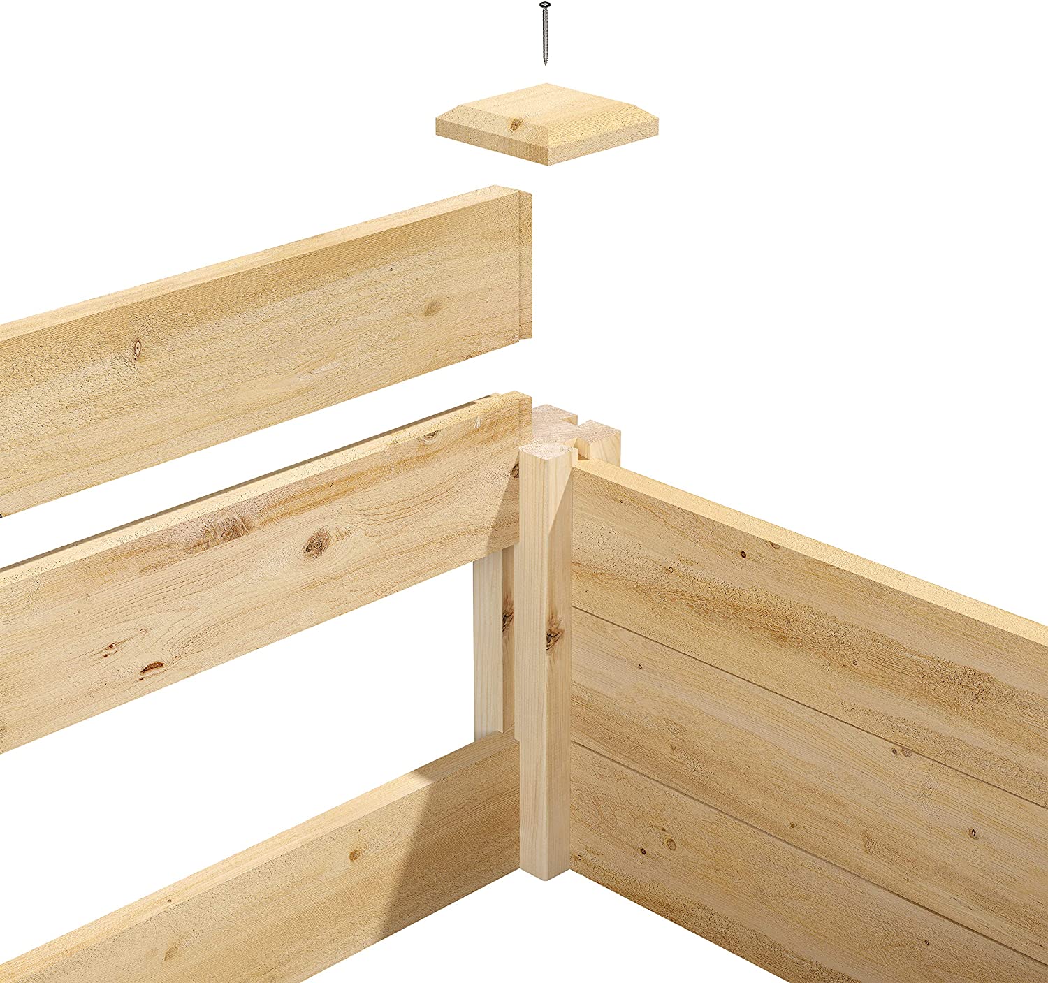 • Boards slide into the corner posts without tools forming a secure garden frame. To install the decorative tops simply use a screw driver.