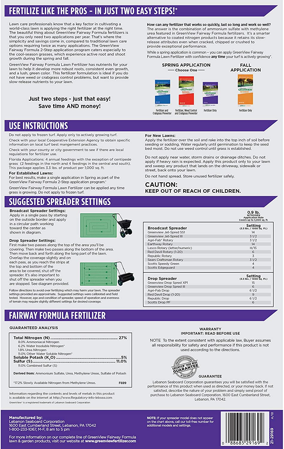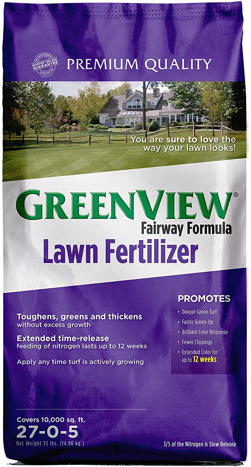 GreenView Fairway Formula Lawn Fertilizer is a premium quality lawn fertilizer that toughens, greens and thickens your lawn. Special extended time-release feeding of nitrogen lasts up to 12 weeks, without surge growth. Apply this formula any time lawn is actively growing. This fertilizer works on any type of grass; will not burn lawn. It promotes a deep green turf color with fewer grass clippings. 100% customer satisfaction or money back.