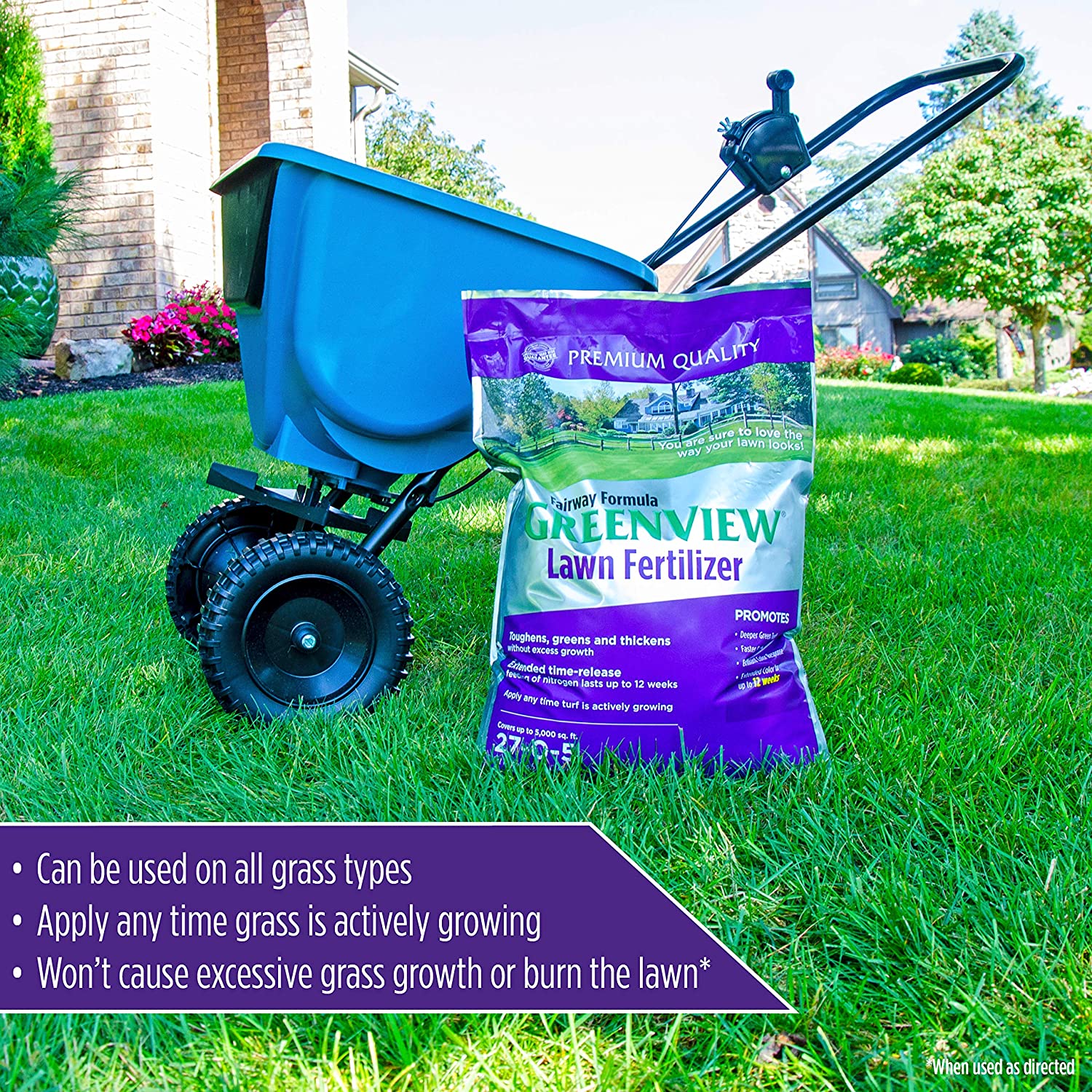 - Premium quality lawn fertilizer that greens and thickens your lawn