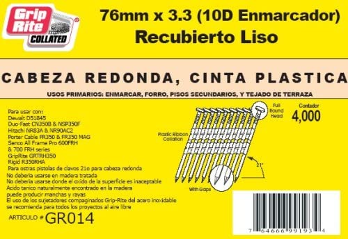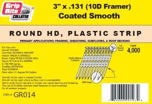 - Use with Grip-Rite GRTRH350 - 21° Full Round Head Framing Nailer