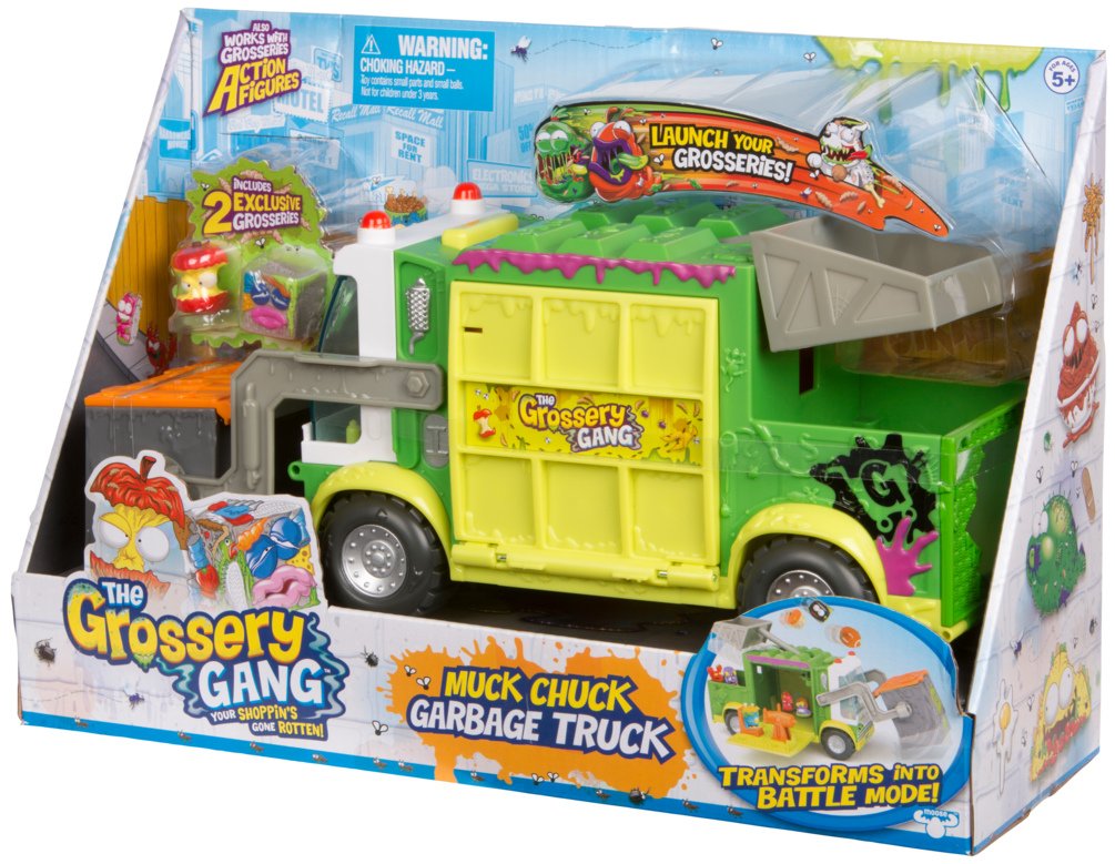 Mess about with the Muck Chuck Garbage Truck! Load up the bin with your Grosseries and gross up the streets by firing them off the back of the truck! Then open the side doors for a scabby battle! It’s the truck with maximum yuck! The Grossery Gang is ready to fight anything that may threaten their vile survival. Who knows what’s over the slimy horizon? '