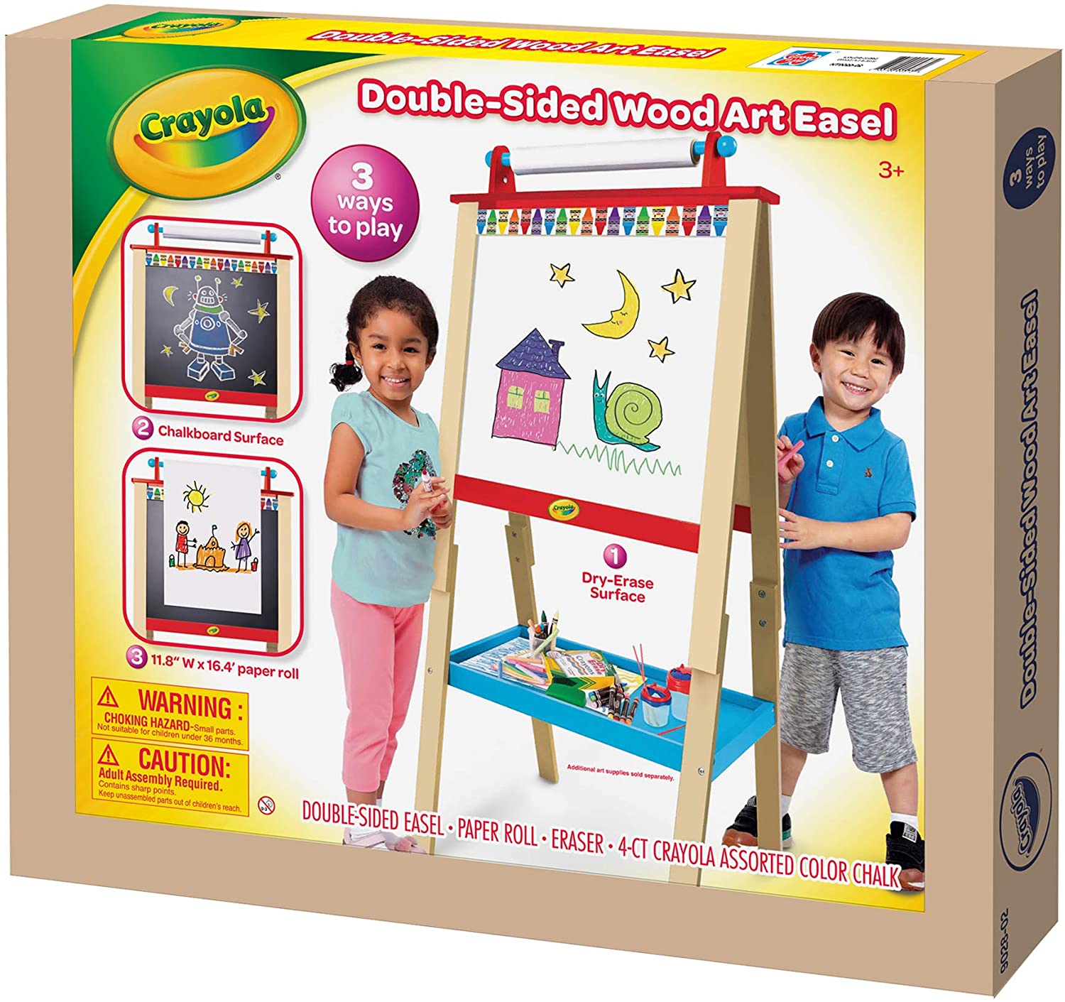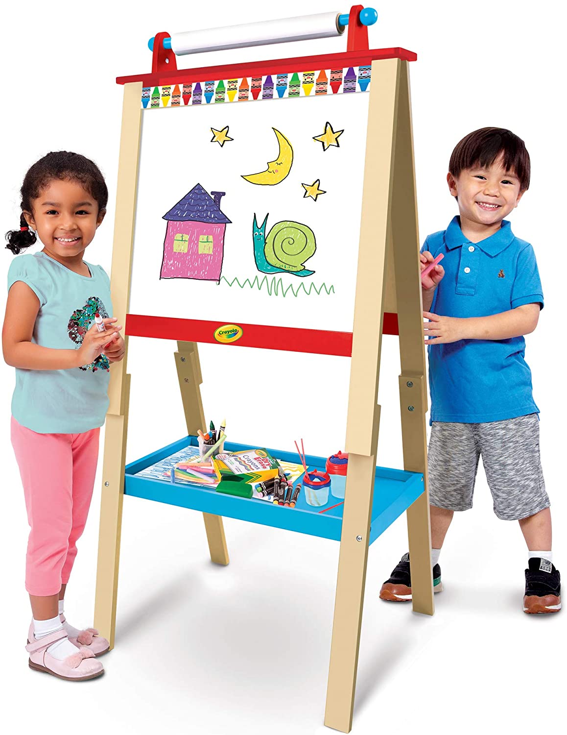 Crayola Double Sided Wood Art Easel, Complete with a Large Drawing Surface, 2 Sided, Dry-Erase And Chalkboard, Specious and Easy Access Wooden Storage Tray