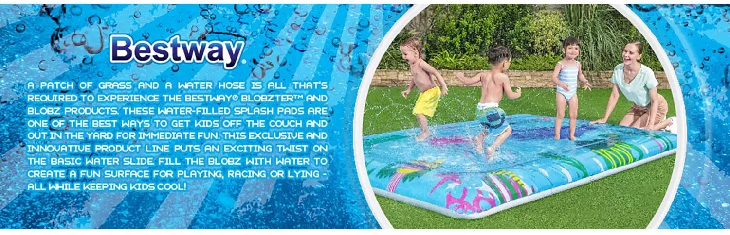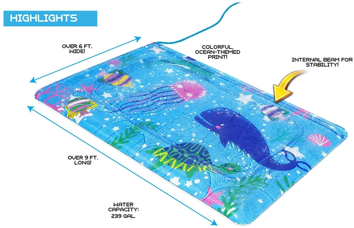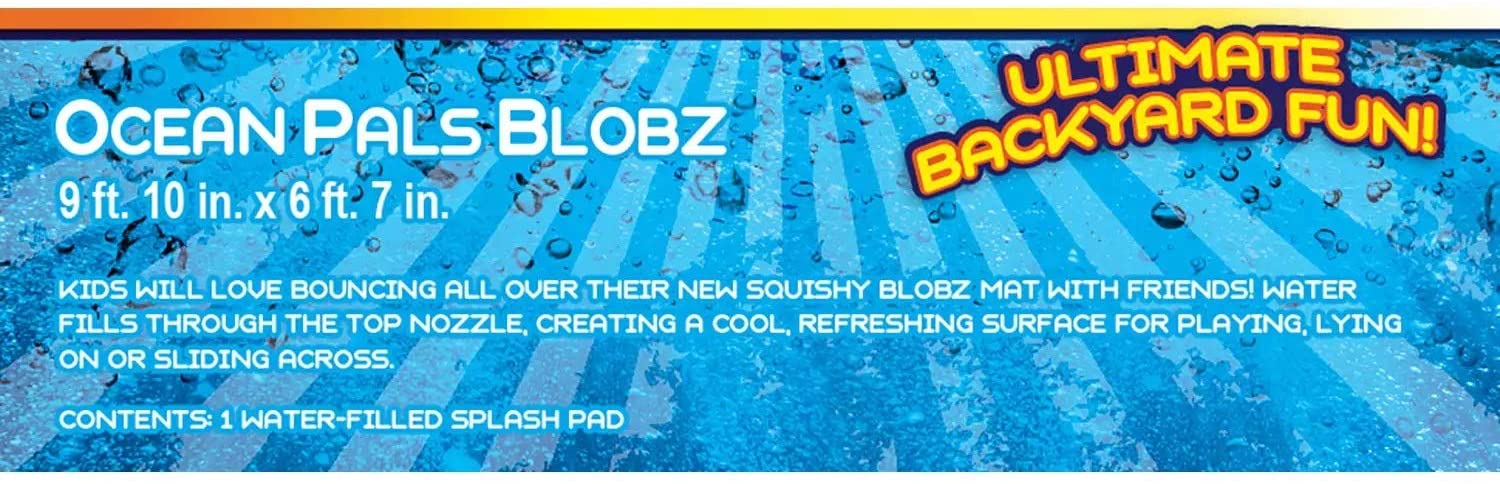 The H2OGO! Ocean Pals Blobz is the perfect accessory for backyard fun and creating new experiences for kids. With a built-in sprinkler, this water-filled splash pad will keep your kids entertained for hours. Water fills through the top nozzle, creating a cool, refreshing surface for playing, lying on or sliding across. Keeping parents in mind an added internal safety chamber prevents rollovers and maintains the Blobz stability during use. Kids will love bouncing all over their new squishy Blobz mat with friends. The Ocean Pals Blobz features a bright, undersea-inspired pattern for a unique experience. Water is easily drained through the top nozzle or through the drain valve at the bottom making clean up hassle free. Playing, sliding and splashing in the sun has never been more fun than with the Ocean Pals Blobz!
