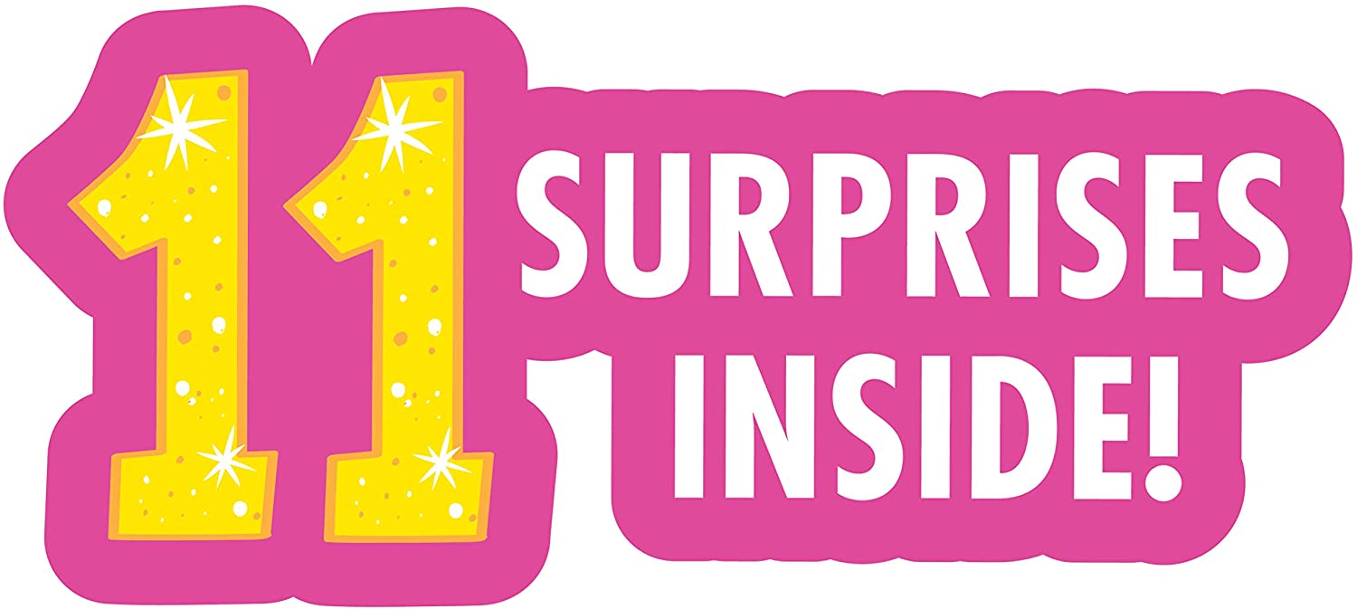 • Pull, peel, and reveal! 11 surprises inside including NEW Hair Art extension!