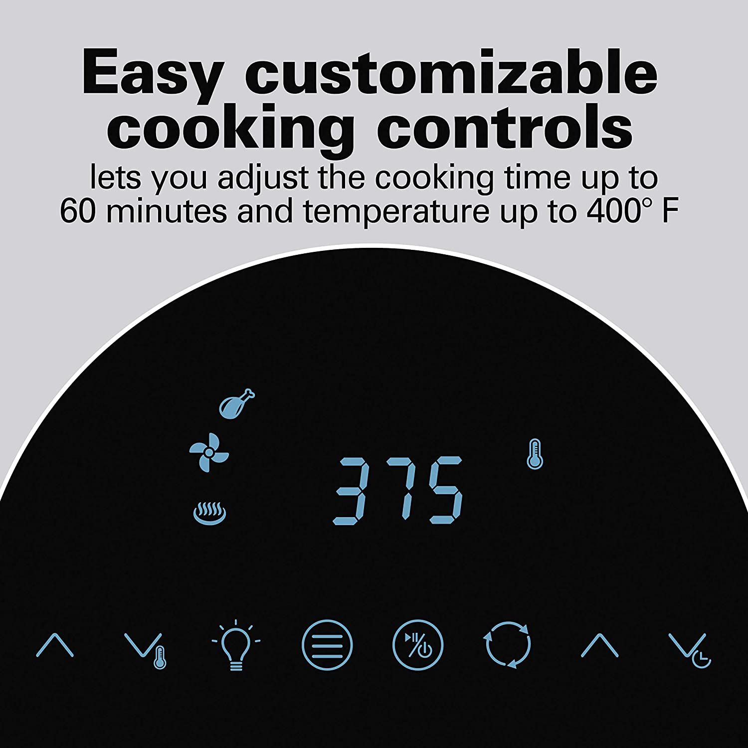 - Easy customizable cooking control Customize your cooking by manually adjusting the time and temperature up to 60 minutes and 400° F