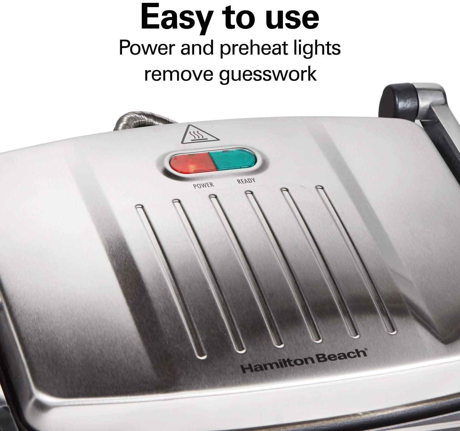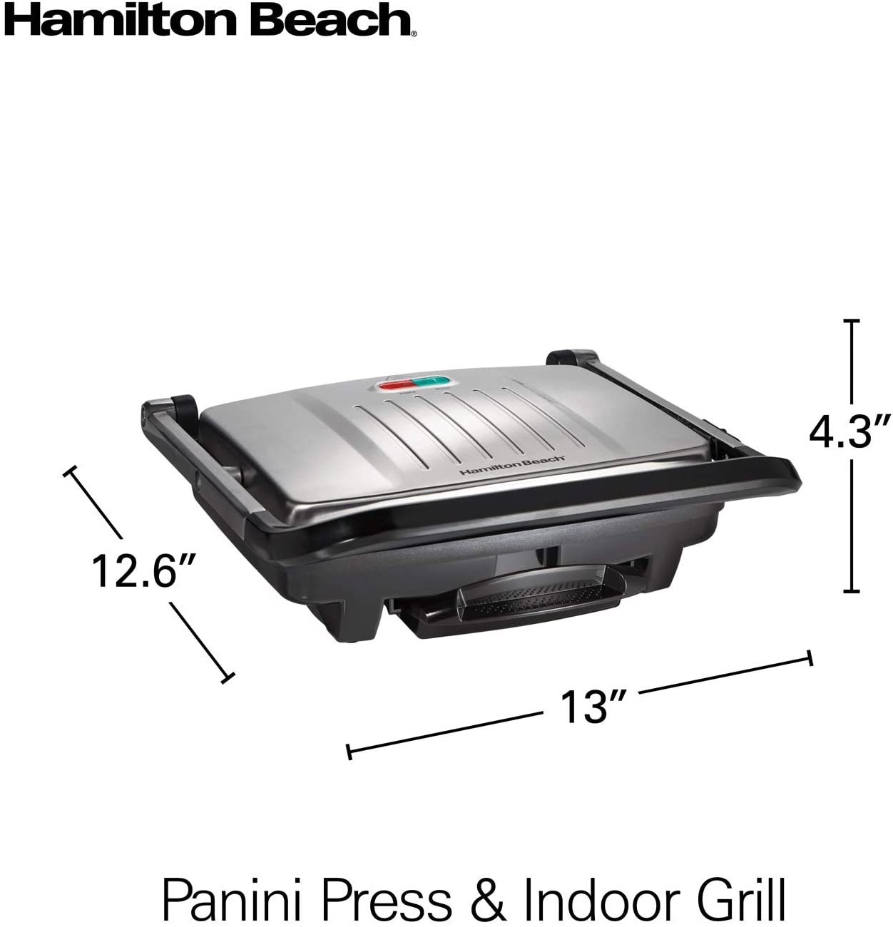 Get restaurant results at home for a fraction of the cost With the Hamilton Beach Panini press & indoor grill. Using your own fresh ingredients, you can make everything from a basic grilled cheese to a mouth-watering Reuben sandwich. Thanks to a café-style floating lid that evenly presses sandwiches of all sizes, how thick or thin you’d like your sandwich is up to you. The grill is easy to use, since power and preheat lights let you know when it is ready. The 95 square inch cooking surface gives you plenty of space to make more than one sandwich at the same time. When finished, the Nonstick grid cleans up easily.