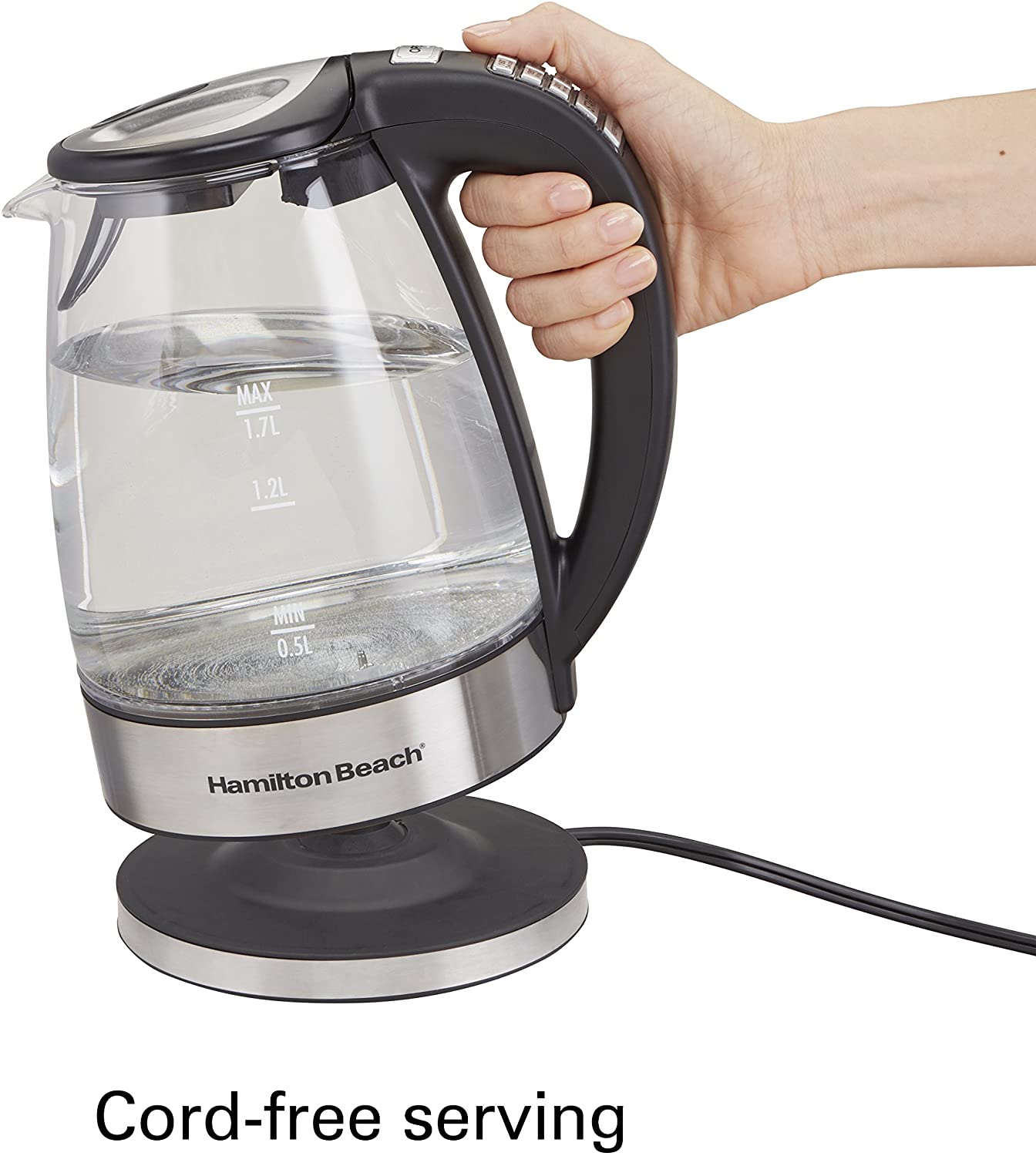 For the perfect cup of tea, not just any cup of hot water will do. Because the exact temperature of your water can impact the quality of the beverage – Boiling water can actually scorch some delicate teas – the Hamilton Beach 1. 7 liter temperature control electric hot water kettle, boiler & tea heater with LED indicator, keep warm, auto-shutoff & boil-dry protection has six integrated one-touch temperature settings. Each corresponds to the ideal temperature for a variety of teas, plus French press Coffee. After you’ve selected your temperature setting, a soft blue illuminating light lets you know hot water is on the way. A keep warm function maintains the temperature of heated water for 30 minutes, so it’ll be ready and waiting when you need a refill.