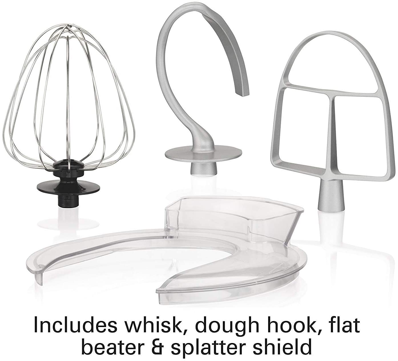 Hamilton Beach Electric Stand Mixer, 4 Quart Stainless Bowl, 7 Speeds, Tilt-Head, Dough Hook, Whisk and Flat Beater, Splash Guard, 300 Watts, Black (63390)