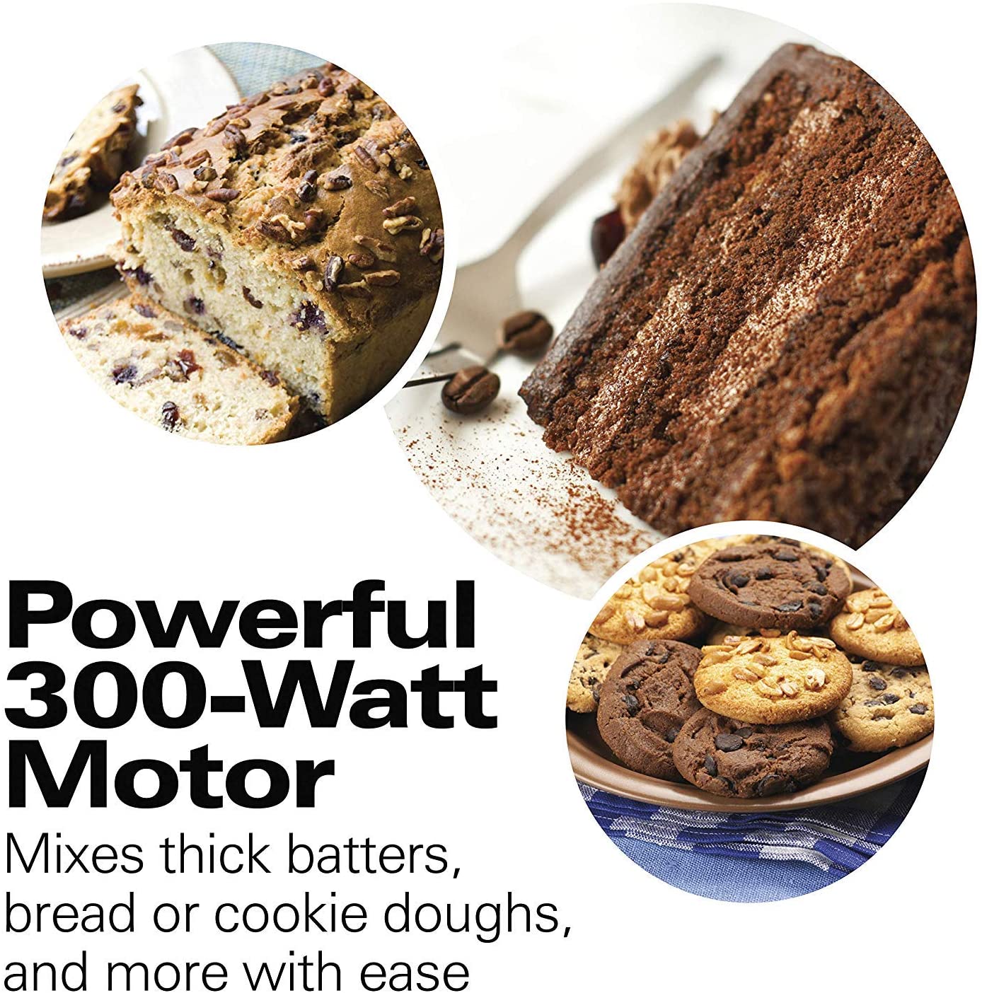 • Baking with ease: effortlessly mix Thick batters and doughs like breads, cookies and more with a powerful, 300 watt motor.