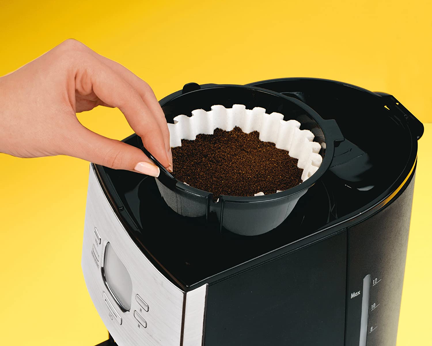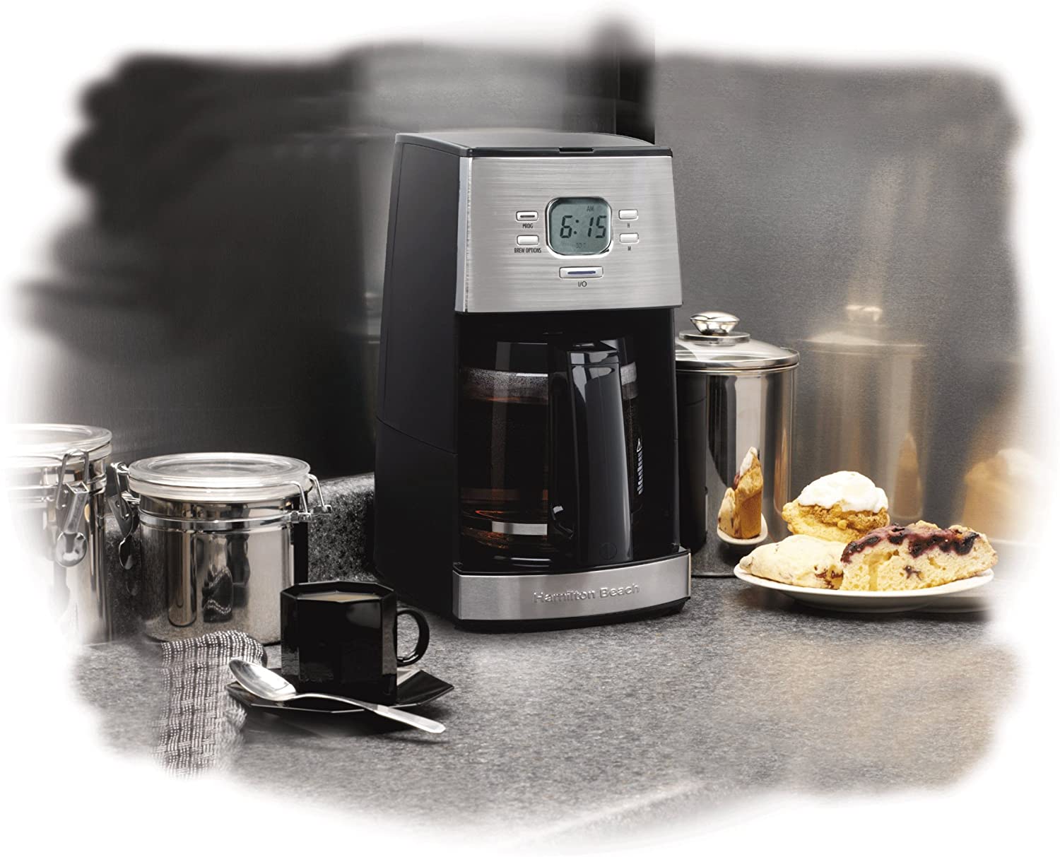 Combine function and fashion with the Hamilton Beach 12 cup Classic Stainless Steel accented coffee maker. The coffee maker has accelerated brewing and chlorine removing water filter to enhance the taste of your morning beverage. The drip free carafe eliminates spills.