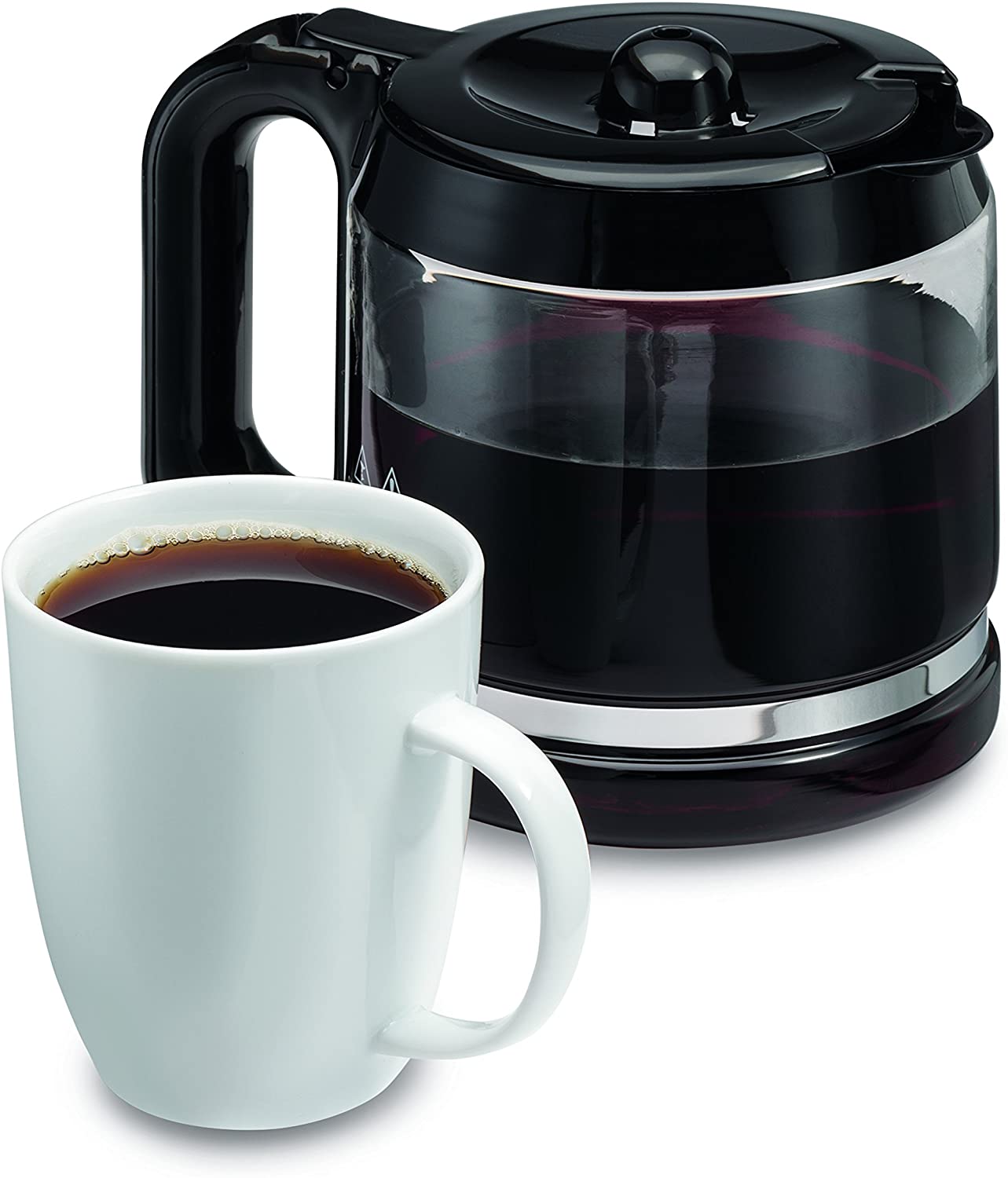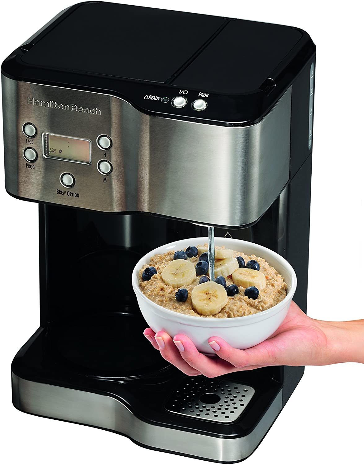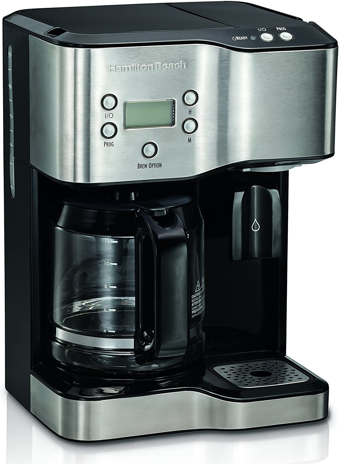 Whether you’re getting breakfast ready for the family or pouring yourself a cup, the Hamilton Beach programmable 12 cup Coffee maker & hot water dispenser can help you streamline the morning rush. That’s because it’s two appliances in one – a 12 cup Coffee maker and a hot water dispenser. Separate water reservoirs means the two sides operate independently of each other, so you can brew a pot of Coffee while using the one-hand hot water dispenser to make tea, cocoa or instant cereals. Both sides can be programmed up to 24 hours in advance, and the 2-hour automatic shutoff makes for one less thing to worry about as you’re heading out the door.