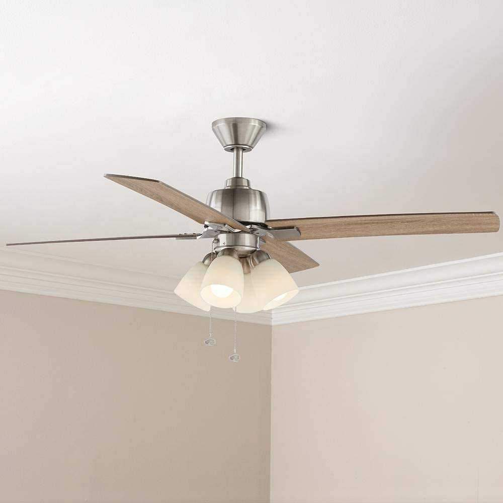 Easily integrate fan and light control into your Amazon or Google smart home system with this smart ceiling fan bundle. The Wi-Fi enabled remote control is powered by Smart by Bond technology which allows you to connect this device via Wi-Fi to your preferred smart home system. Fast and easy setup; simply download the latest Bond App to your smartphone (available for iOS and Android) Smart by Bond connects to your internet Wi-Fi network instantly adding voice control with Amazon Alexa and Google Home Assistant. This means that your ceiling fan can be voice-activated. Additional drivers are available for full integration with other systems including SmartThings Control4 ELAN Hubitat and more. The included Wi-Fi remote control is shipped separately. The Hampton Bay 54 in. Malone fan offers dependable performance and beautiful styling to enhance your indoor living space. The Malone features a 3-speed reversible motor for year-round comfort and a 4-light light kit to produce ample illumination. The light kit uses four 9-Watt LED bulbs (included).