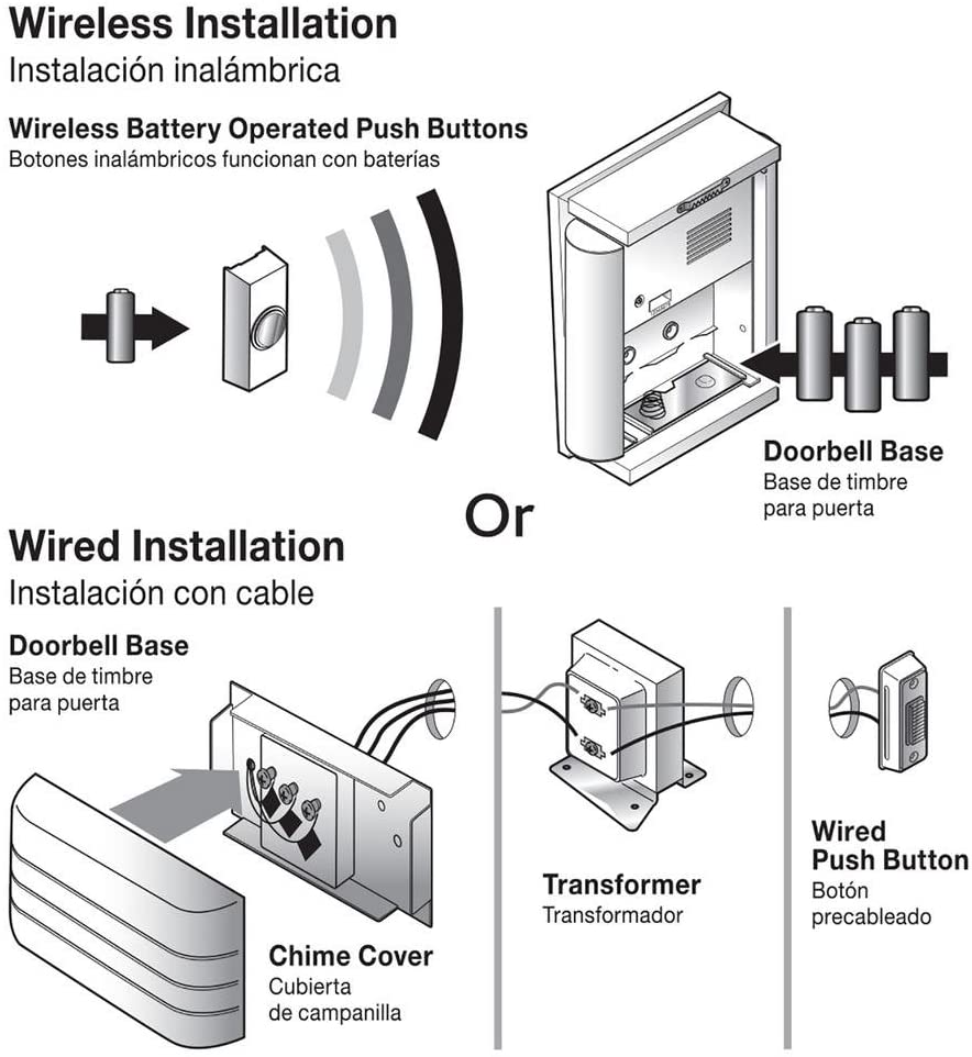 - Simply enhance your home’s entryway with this wired doorbell push button. Finished in an antique brass and featuring a solid metal plate, this push button works with most 16-Volt hardwired doorbell systems and mounts to your home’s doorframe or exterior wall. This push button requires a transformer if not already installed, and this unit is compatible with any wired doorbell brand. It also features a lighted insert so your visitors can easily view the button at night.Replacement wired