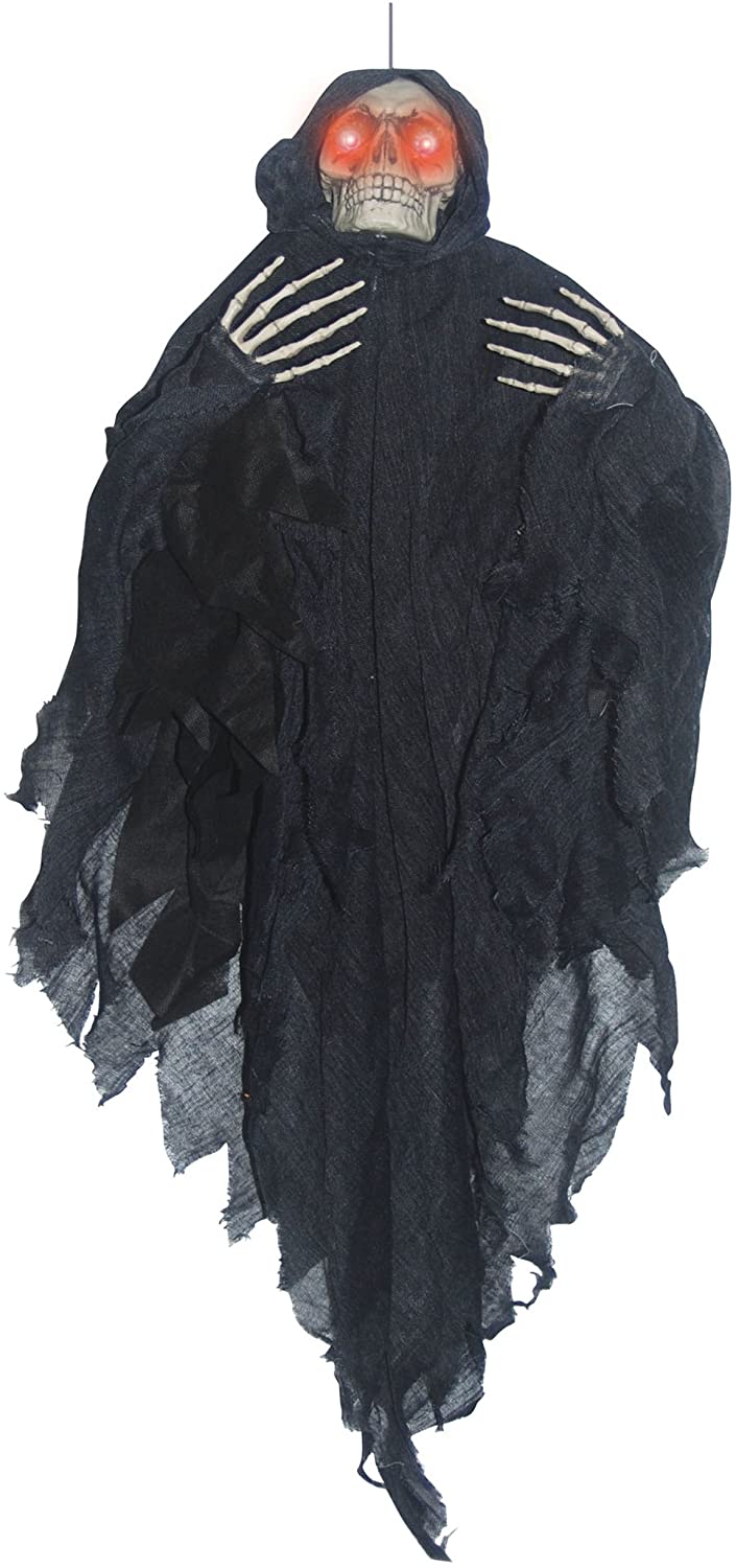 This black reaper has come to collect your soul! Actually, he's just here for the party. Hang this reaper with light up eyes anywhere in your home to give guests an extra scare this Halloween! - Hanging Reaper Decoration