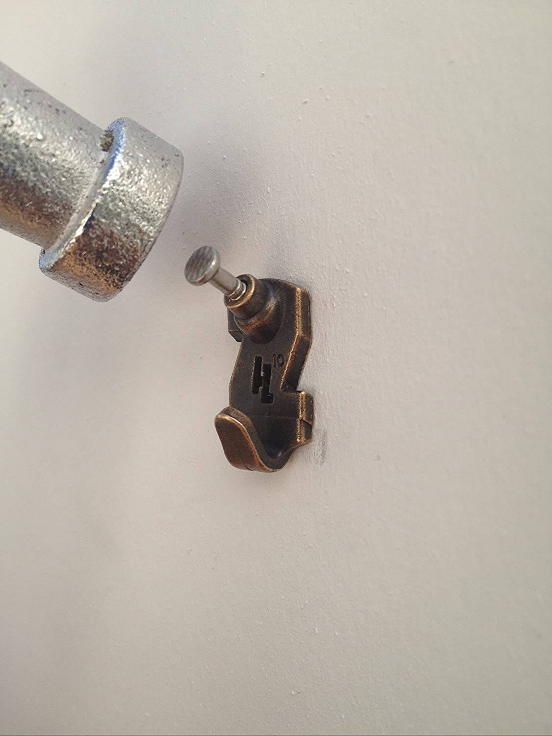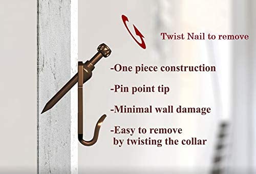 HangZ Gallery Picture Hooks are the professional's choice when hanging pictures, mirrors and canvas. One piece Zinc Alloy construction make HangZ the world's strongest picture hooks. Each hook can hold up to 10 pounds! Specially designed precision channels assure that the nail enters at the perfect 45 degree angle. All HangZ Gallery hooks have been tested in 1/2-inch drywall and require No studs or anchors. Unlike other hangers who make weight claims then say its for comparative purposes ONLY, HangZ Gallery Picture Hooks are great for use with sheetrock and plaster walls. Antique Brass Finish for decorative look. Sold as a package containing 20 hooks and nails.
