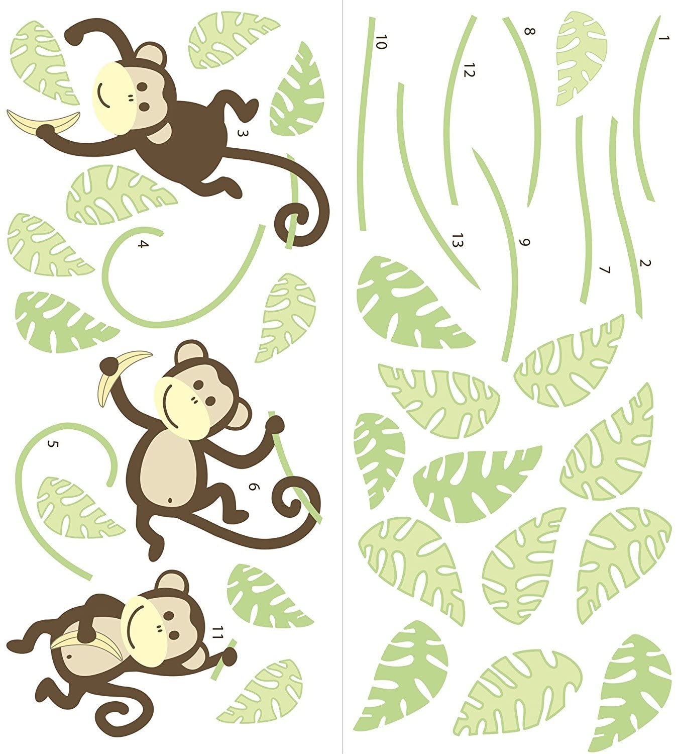 Happy Monkey Swinging Self-Stick Removable Reusable 36 Piece Wall Decor wpk0019