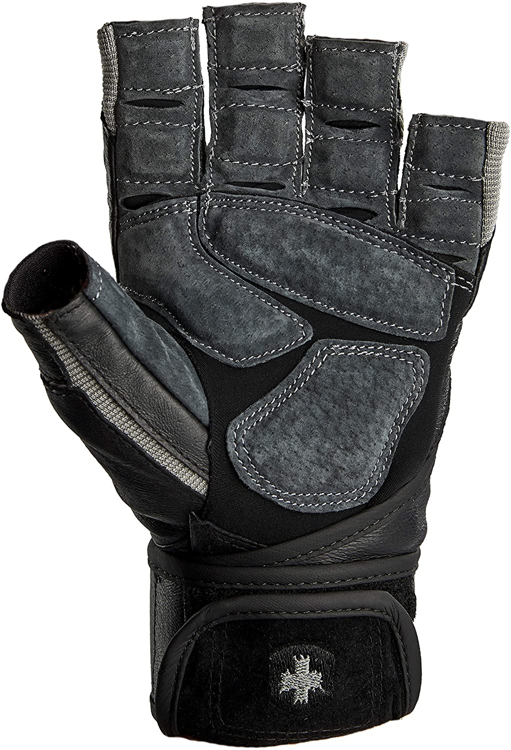 Harbinger BioForm Wistwrap gloves feature exclusive dual technologies - patent-pending BioForm and BioFlex - in the world's premier weight training glove. Strategically placed new tech Biform pads softens with body heat, molding to hand and bar, for a dynamic, comfortable grip. This engineered protection helps prevent calluses and blisters to lift heavier, harder and longer. Proprietary BioFlex layered stretch design mimics the hand's natural motion, while exclusive Spider Grip leather on palm maximizes grip. Precurved extended finger length reduces fatigue by maintaining proper hand position. Fully adjustable Wrist Wrap with Fit Lock tension tab that pulls palm smooth, eliminating excess bulk.
