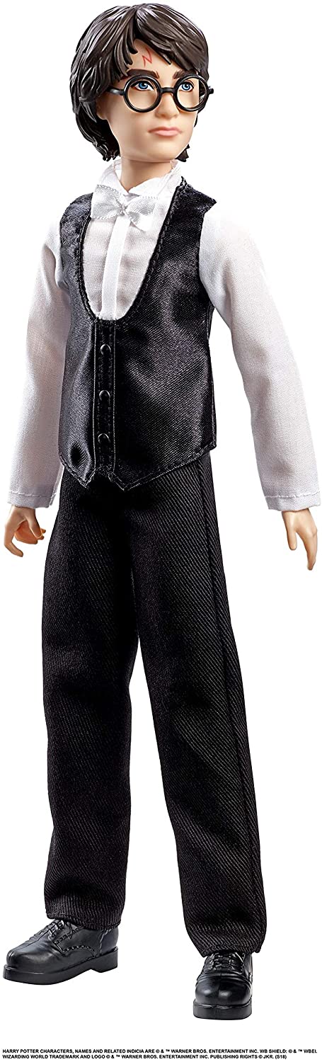 This Harry Potter film-inspired doll brings Harry back to Hogwarts for an enchanted evening at the Yule Ball. This Harry Potter doll looks just like his character in Harry Potter and the Goblet of Fire and comes dressed in his Yule Ball look, featuring modern dress robes in all black over a crisp, white shirt and a matching bow tie. Authentic details, like Harry doll's iconic scar and glasses and a Yule Ball invitation accessory, add to the storytelling fun. With eleven "joints" -in the neck, shoulders, hips, knees, elbows and wrists -Harry Potter doll is ready for imaginative play and spellbinding poses! Harry Potter Yule Ball doll makes a great gift for Harry Potter fans 6 years old and up. Kids can collect Hermione Granger, Ron Weasley and Cho Chang Yule Ball dolls for more storytelling fun. Each sold separately, subject to availability. Colors and decorations may vary.
