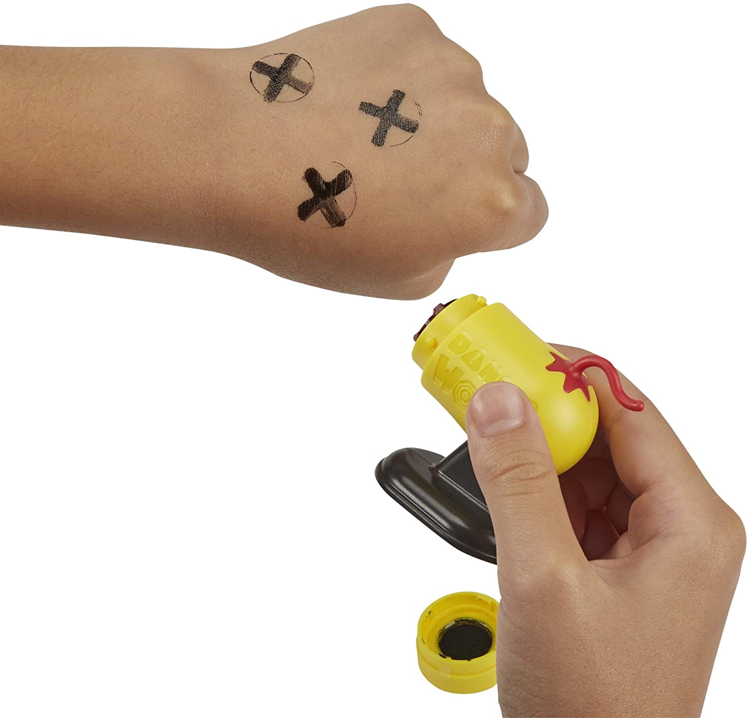 - INCLUDES RUBBER STAMP: Say the Danger Word by mistake? Get stamped! The game includes a rubber stamp that stamps an X on your opponent's forehead. If a player gets 3 stamps they lose the game