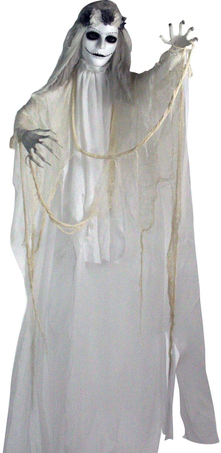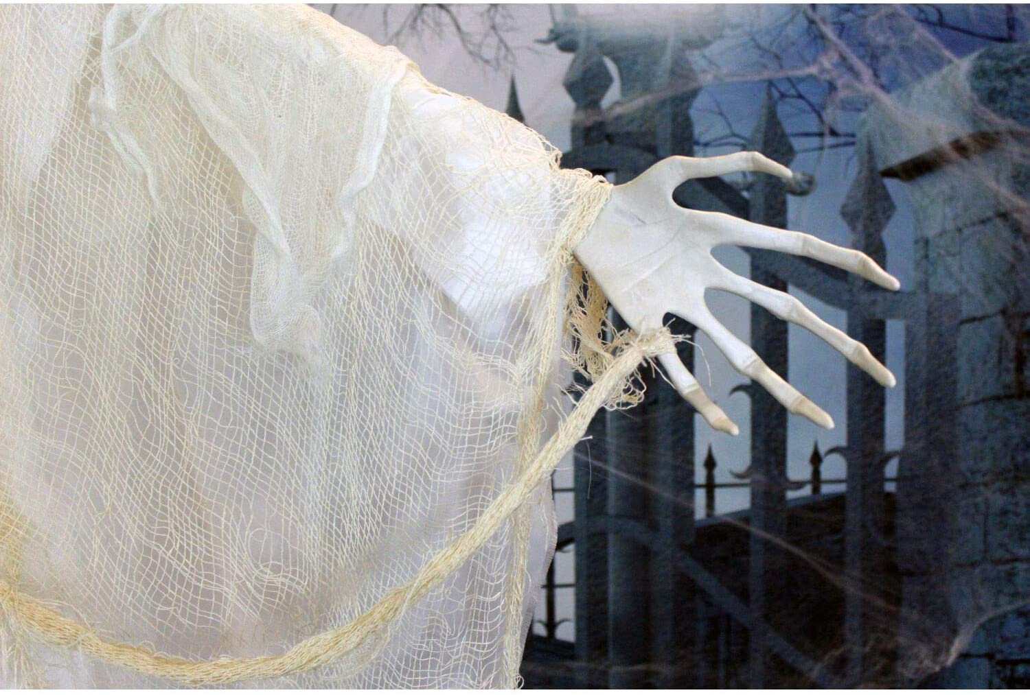 - MULTI-FUNCTIONAL Figure: Creepy and scary! Dead woman prop lights up and has sound. She will turn your home into a haunted house in no time. Line up or hang multiple ghostly spirits for a graveyard look.