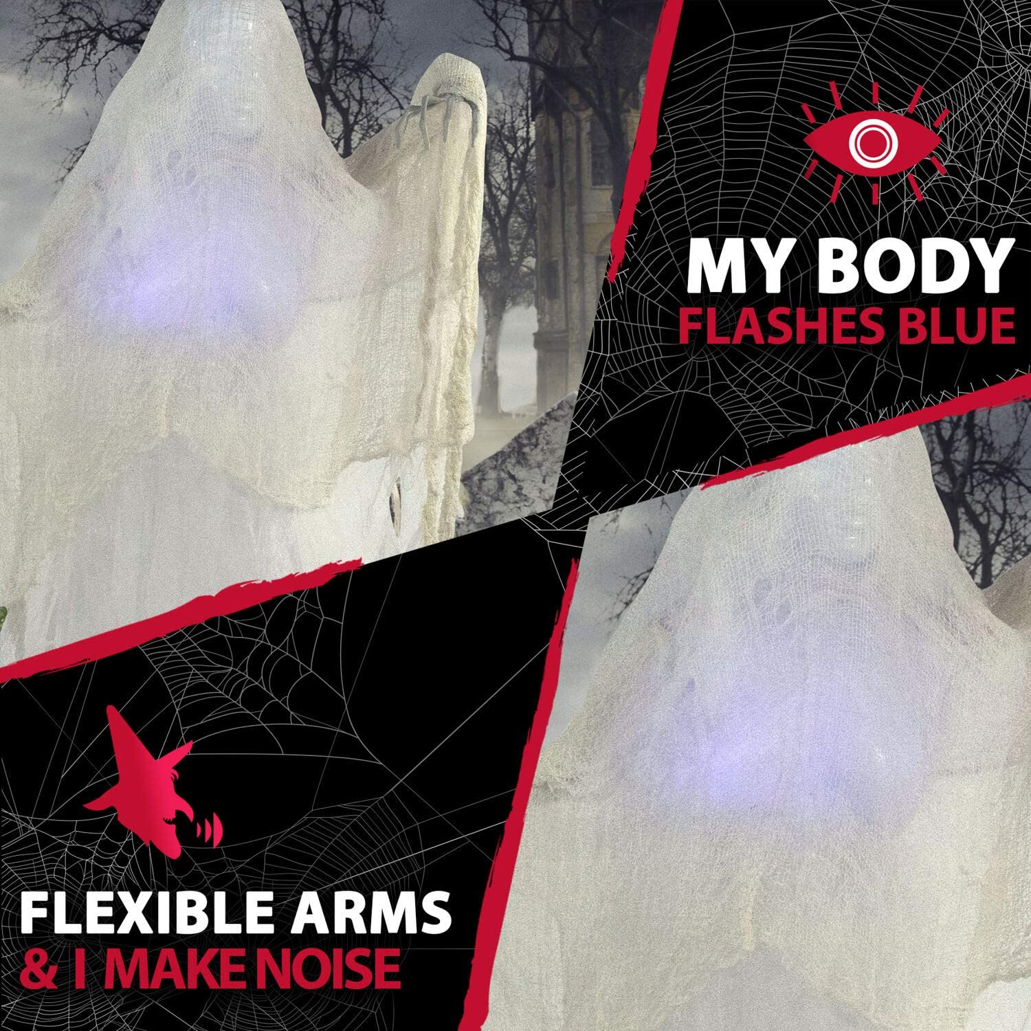 • TOUCH ACTIVATED: Place this phantom on your porch, guarding your front door or along your walkway to delight and frighten trick or treaters. Activates by touch or from loud noise/motion like wind or the screams of scared people passing by!