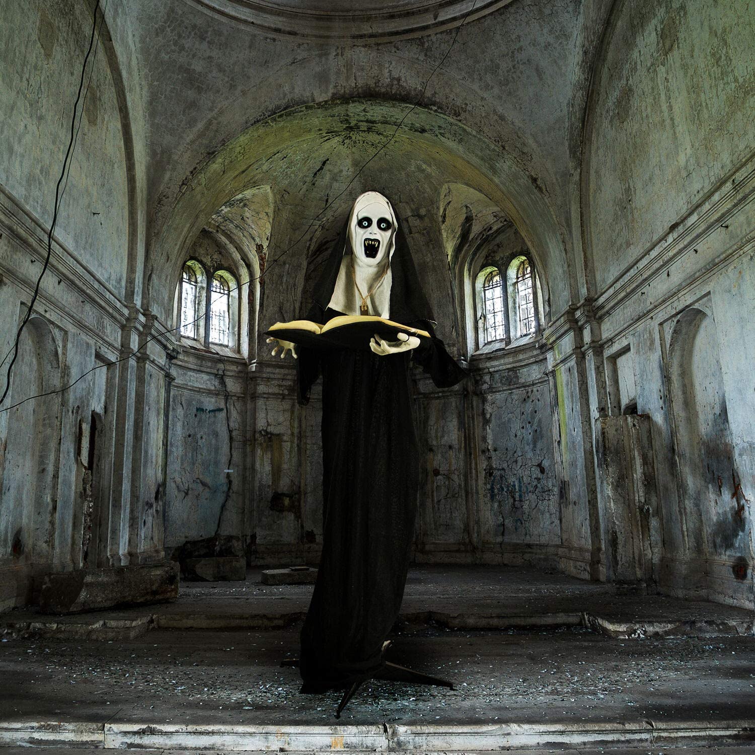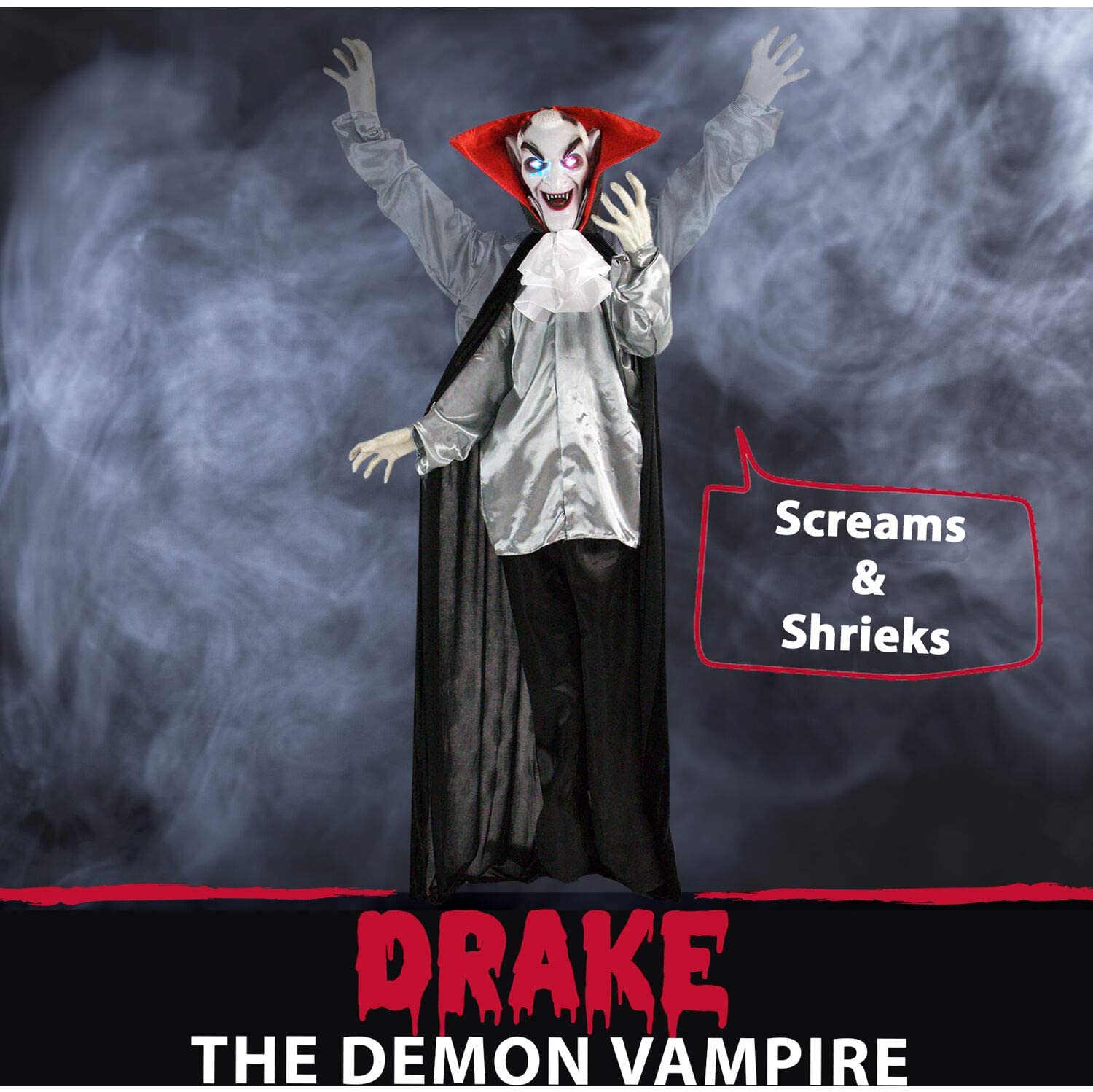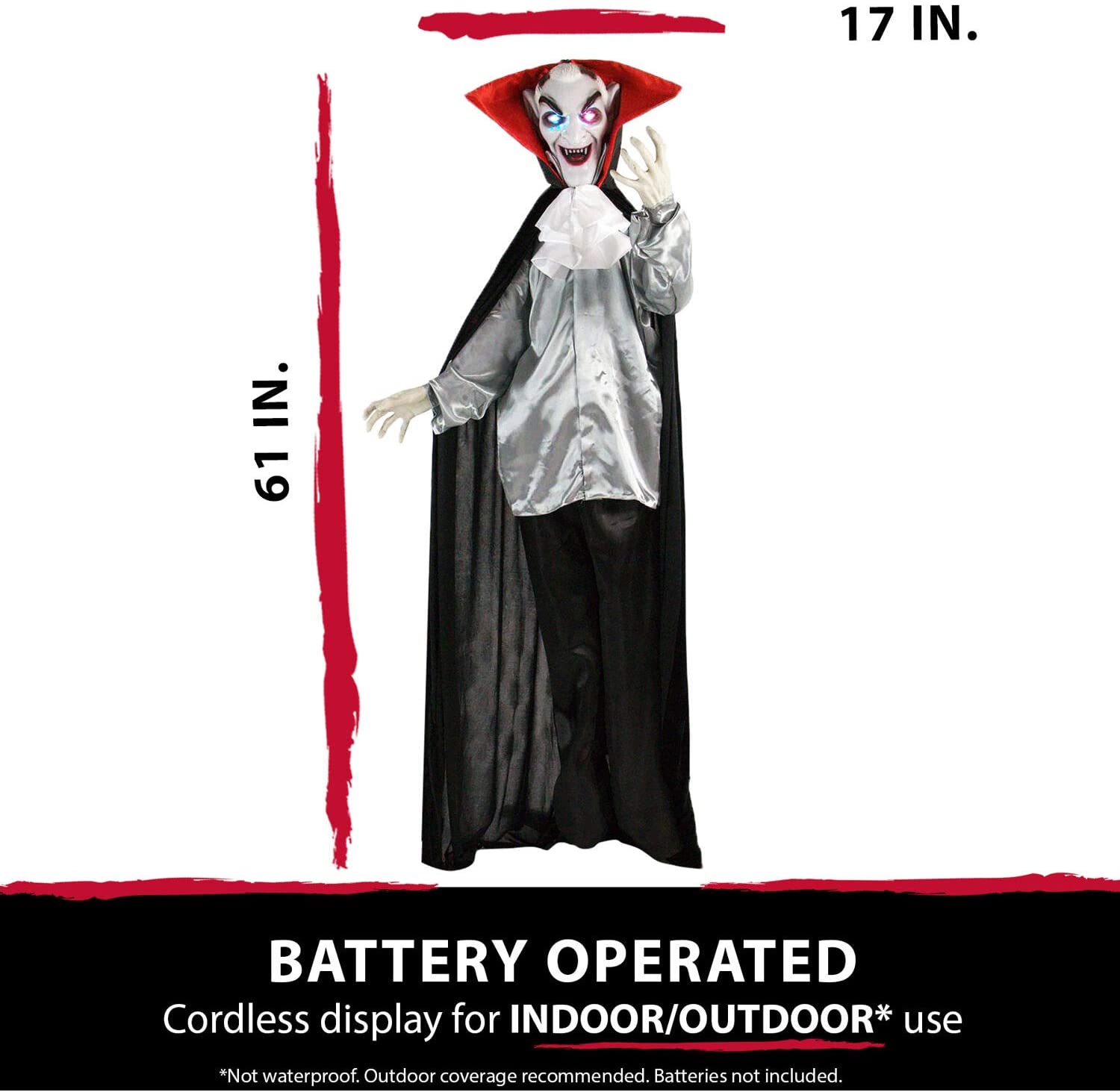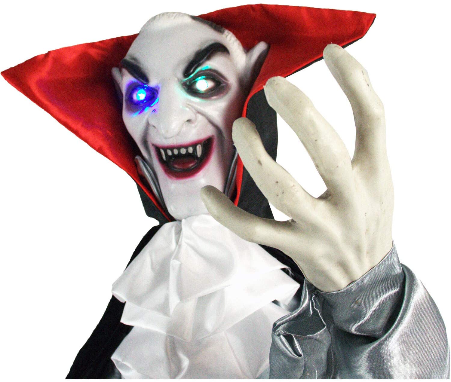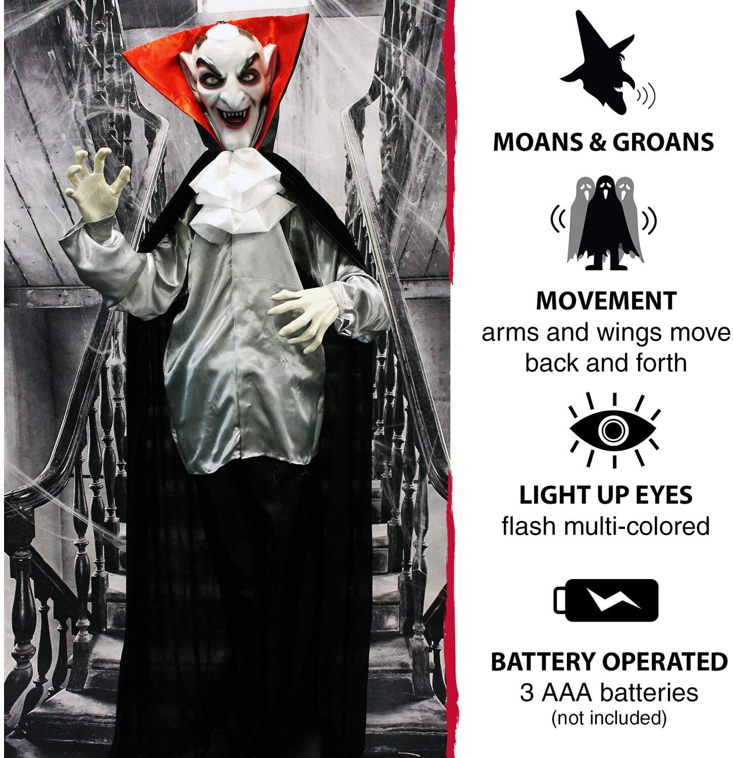 - Life Size ANIMATRONIC: Poseable Halloween vampire is perfect for your indoor or (covered) outdoor decor. Display your animated demon decoration in a variety of different scary and evil ways at your next party.