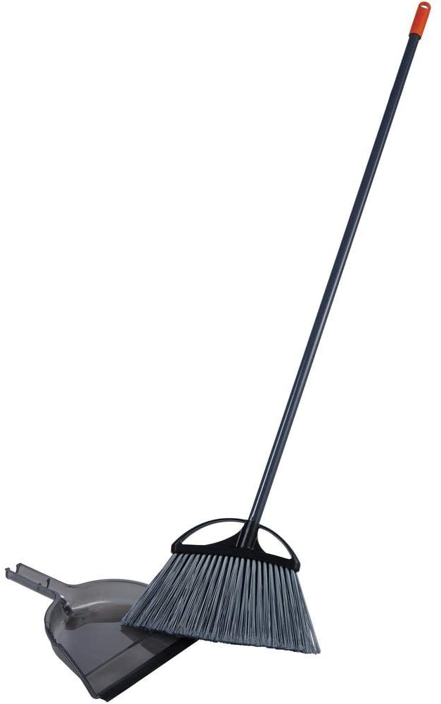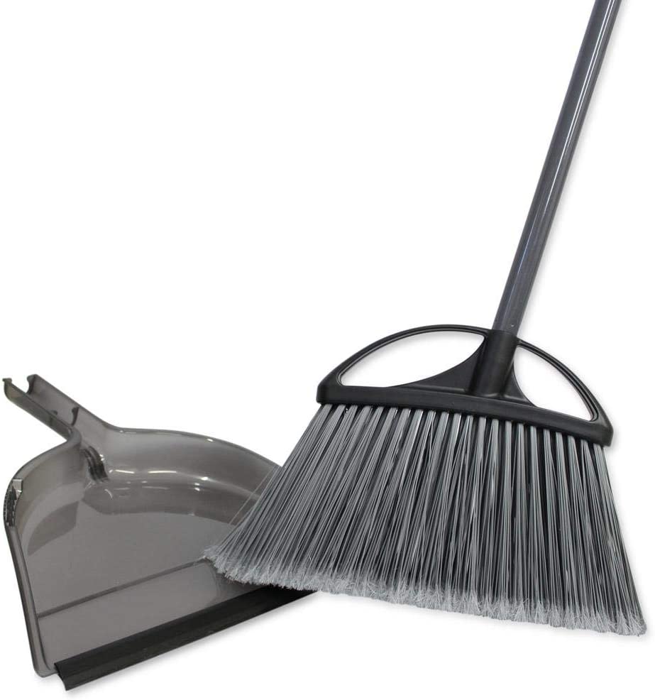 This extra wide angle broom has a 13 inch sweeping path. It can help clean quickly and easily. Great for indoor and outdoor jobs with it's heavy-duty fibers. This also includes a 13 inch dustpan with a rubber lip that makes sweeping dirt into the pan a breeze.