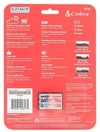 Talk to someone as far as 16 miles away with these blue Cobra HE146 16-Mile 22-Channel FRS/GMRS 2-Way Radios. The power save mode makes the batteries last longer, and call alerts make it easy to know who is sending a message. An integrated NOAA radio in this pair of walkie-talkies provides current information from all available government weather stations.