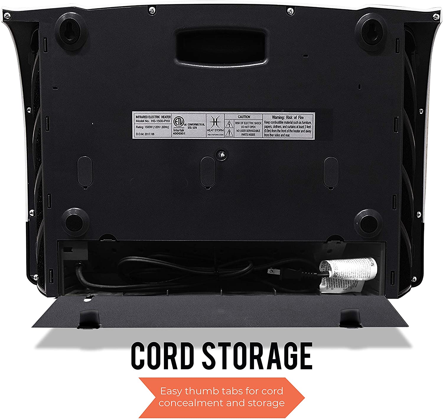 - When installed over the outlet, you can hide the cord inside the heater. This unit stays cool to the touch and the wall stays cool.