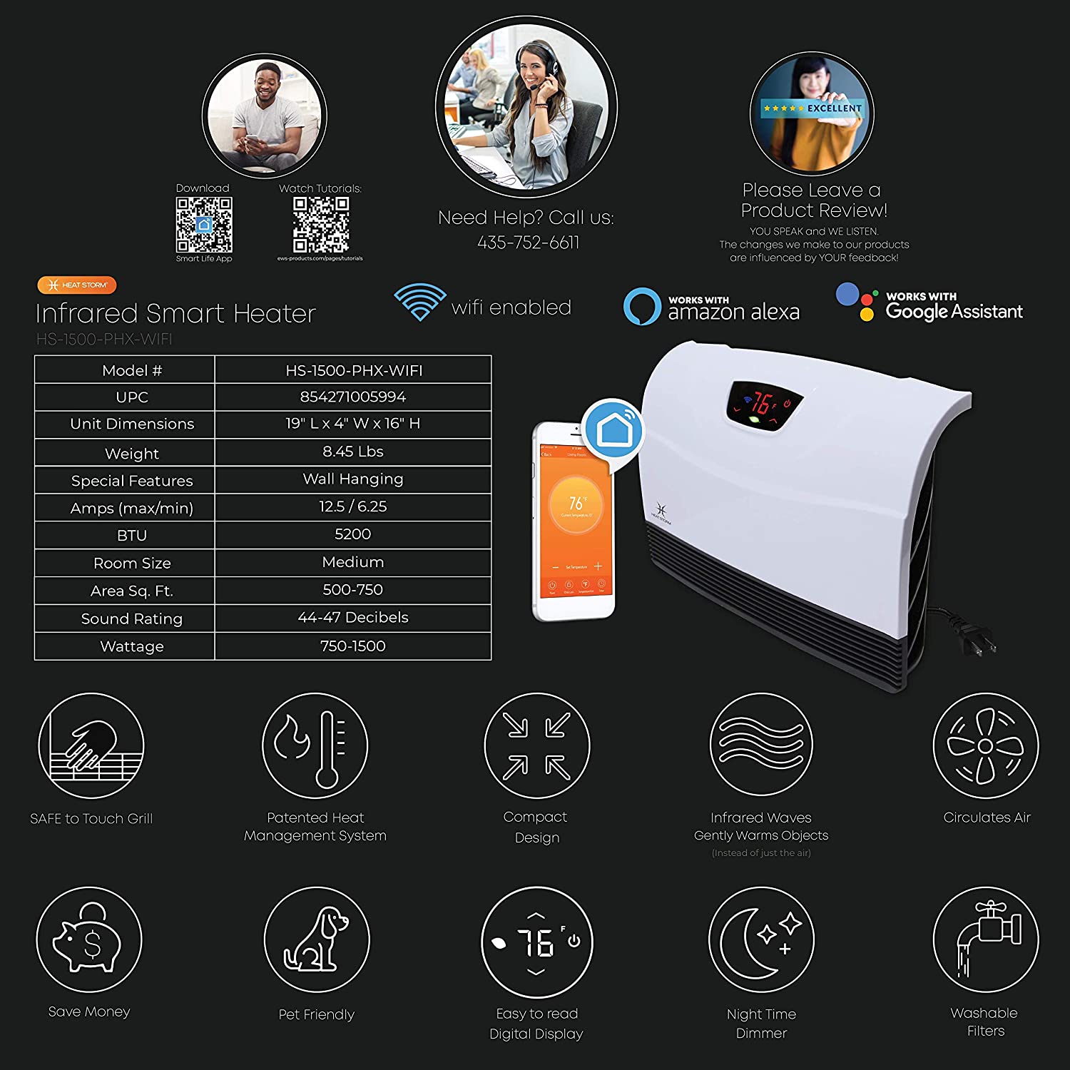 - (Wall Mounted Heater Only.) Wi-Fi enabled makes it possible for you to control the temperature from your phone!