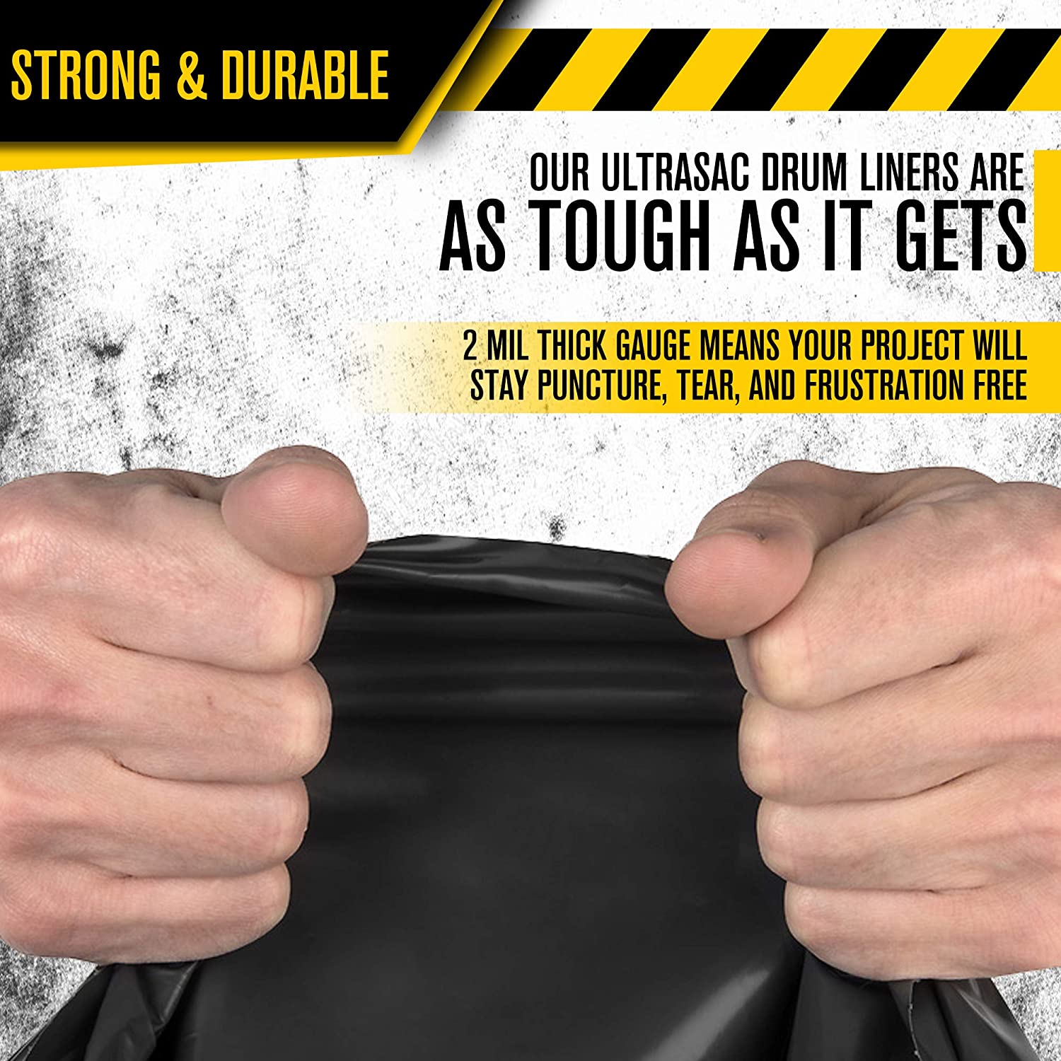 - Frustration Free - Our Ultra sac industrial 55 gal drum liners are as tough as it gets. 2 Mil thick with star sealed bottoms mean your project will stay puncture, tear, and frustration free.
