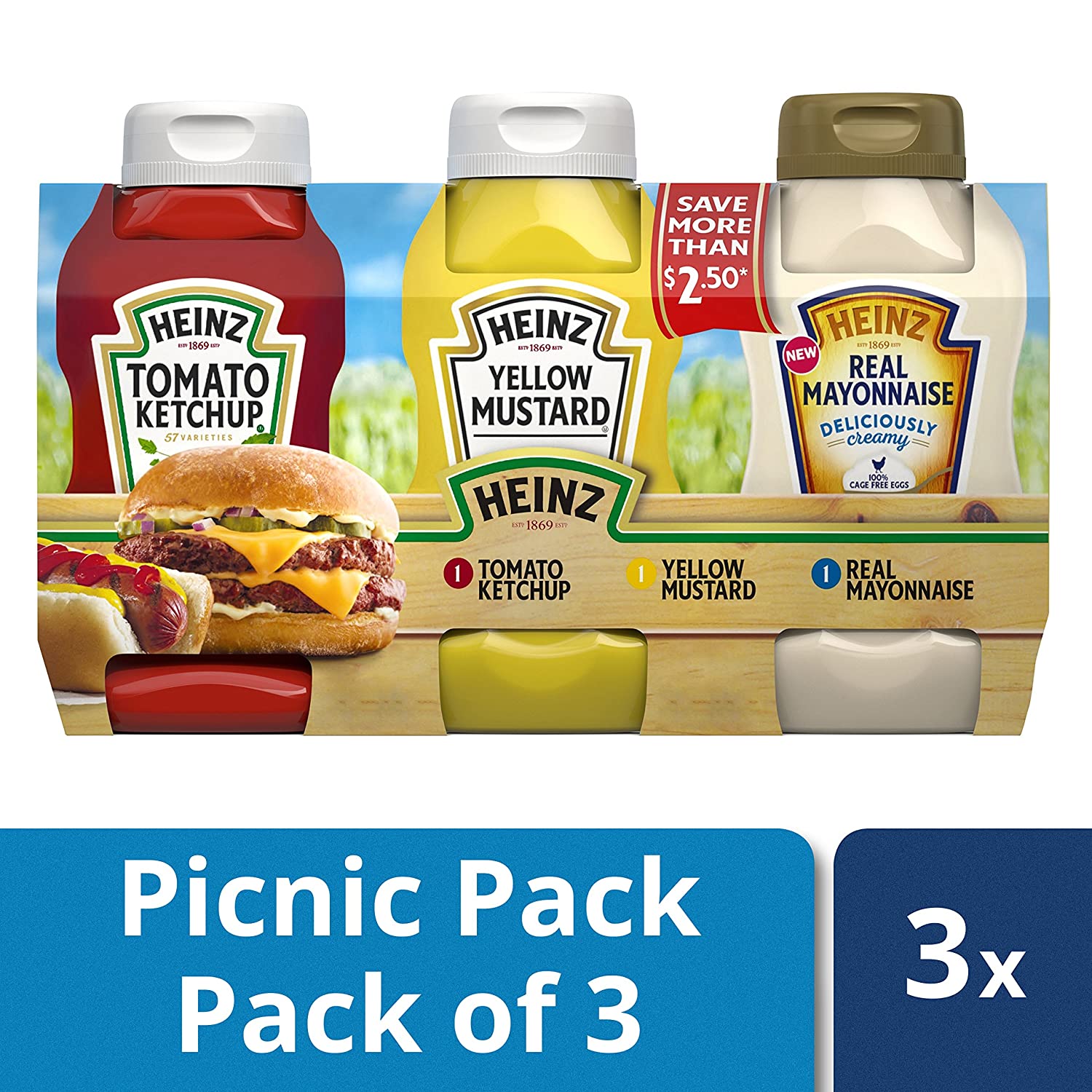 Heinz Tomato Ketchup, Yellow Mustard and Real Mayonnaise Variety Pack (49 oz Pack, Pack of 3)
