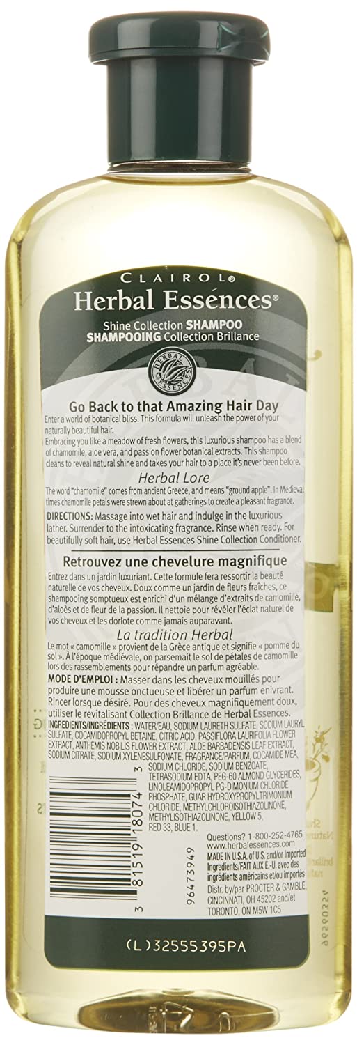 Get your shine on with Herbal Essences Shine Collection Shampoo. Shine Collection Shampoo is infused with a blend of chamomile, aloe vera and passion flower extracts to cleanse and promote healthy, shiny hair. Plus, this shampoo is free of silicones and mineral oil to keep your hair feeling as healthy as it looks.